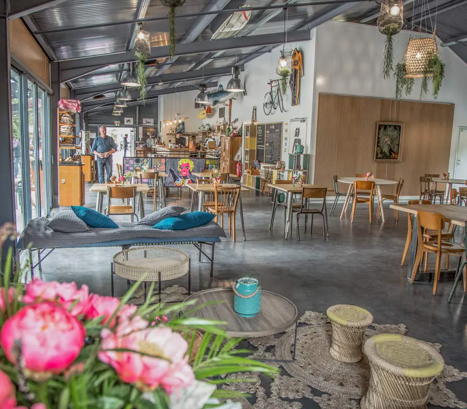 Die ECOLodge DUNE eine geschickt gestaltete Lehmhütte, bietet 3 zimmer für 6 Personen und ein Badzimmer. getrennt WC. Das Küche, offen auf der Terrasse, sorgt für ein schönes Licht im Inneren.