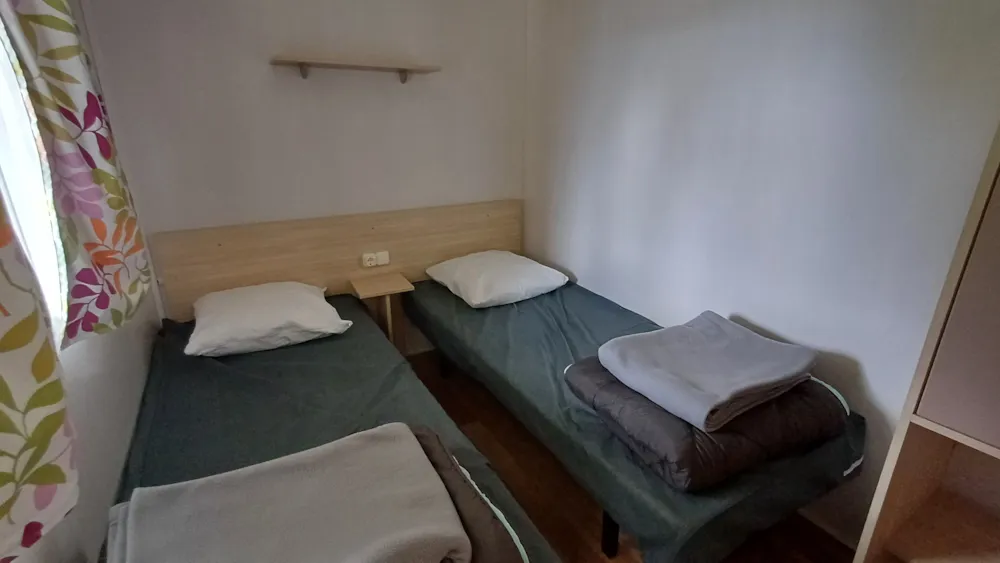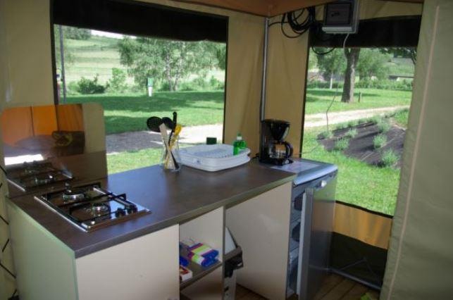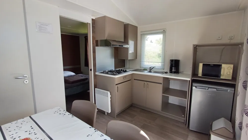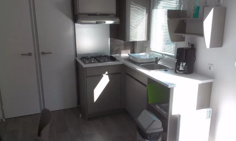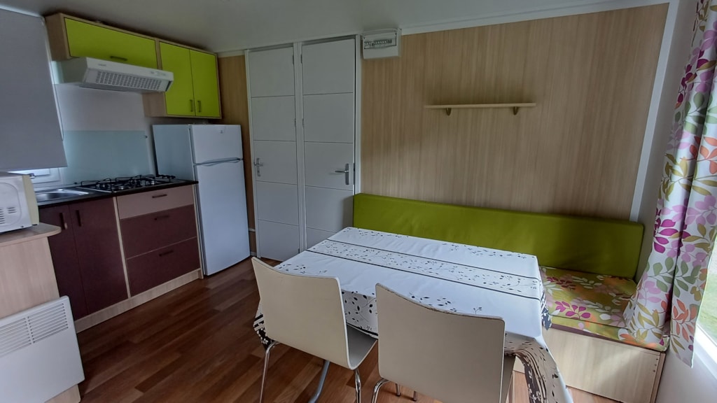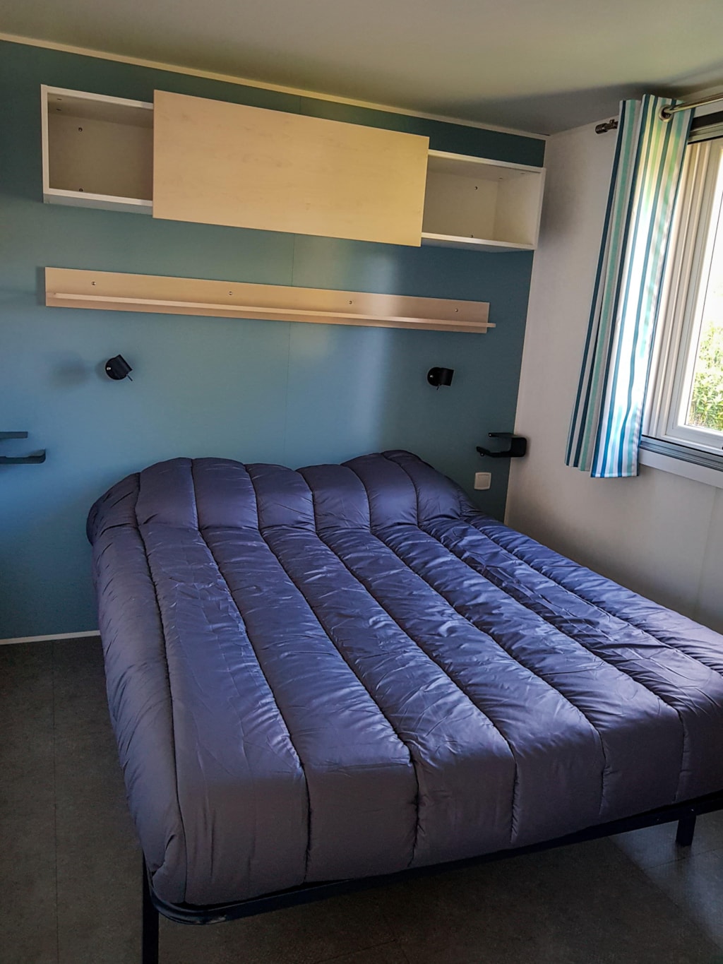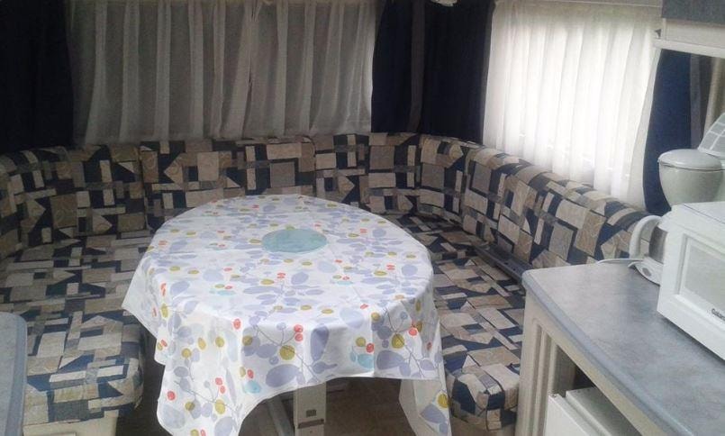 Der Campingplatz verfügt über zwei Wohnwagen ohne Heizung für 2 Personen. (eines mit 1 Doppelbett 140x190 und das andere mit 2 Einzelbetten 80x190). Sie sind mit 2 Gas- oder Elektrokochplatten, Geschirr, Bettdecke ausgestattet. Bettwäsche und Haushaltswäsche werden nicht gestellt. Sie haben die Möglichkeit, Einweglaken zu kaufen oder vor Ort zu mieten. Ein Waschraum mit Waschmaschine und Trockner steht Ihnen zur Verfügung.