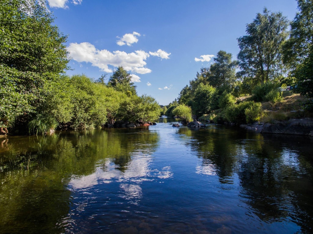 Das besondere Extra: eine erhöhte Terrasse mit Blick auf den Fluss und die grünen Landschaften der Lozère.