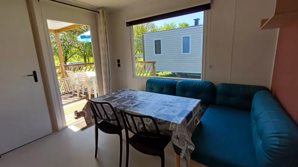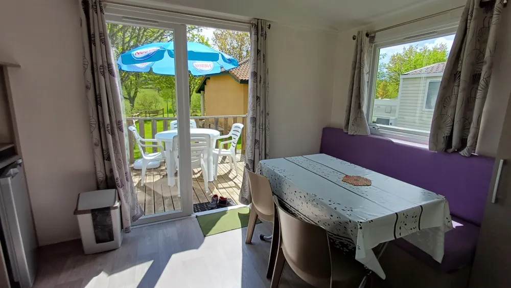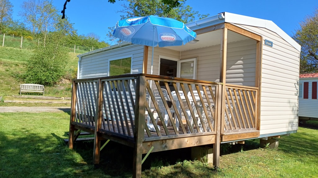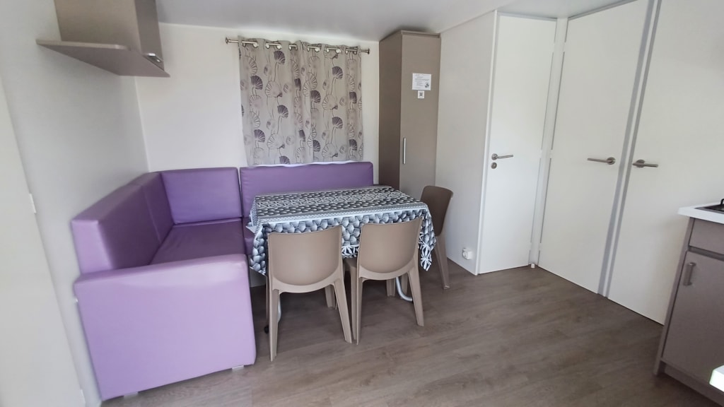 Der Campingplatz verfügt über 2 Mobilheime mit Terrasse für 5 Personen. davon 1 Schlafzimmer mit Doppelbett 140x190, 1 Schlafzimmer mit 3 Einzelbetten 80x190 (davon 2 Etagenbetten), Küche mit Gasherd, Mikrowelle, Kühlschrank, Geschirr, elektrische Kaffeemaschine, Bettdecken und Polardecken vorhanden, 1 Badezimmer Wasser mit WC . Bettwäsche und Haushaltswäsche werden nicht gestellt. Sie haben die Möglichkeit vor Ort Einweglaken zu kaufen. Ein Waschraum mit Waschmaschine und Trockner steht Ihnen zur Verfügung.