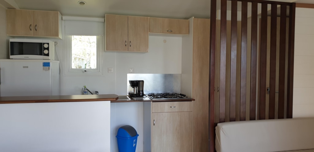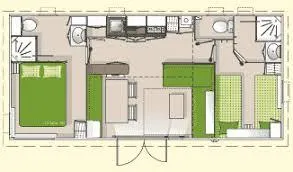 1 cuisine équipée, 1 coin salon, 1 WC, 1 salle d'eau 1 chambre avec lit 140x190+ 2chambres 2 lits 90x190