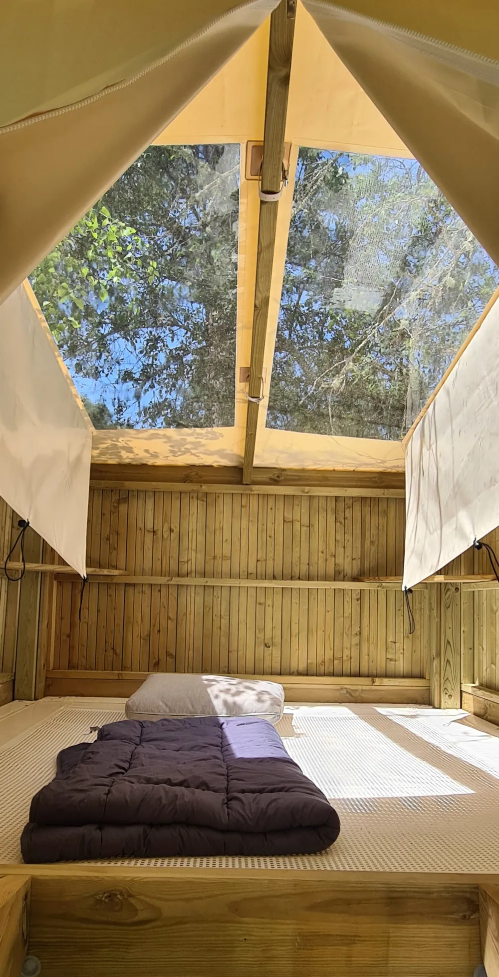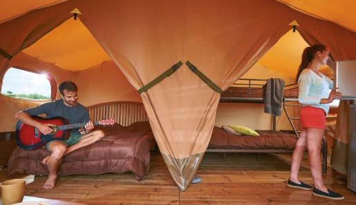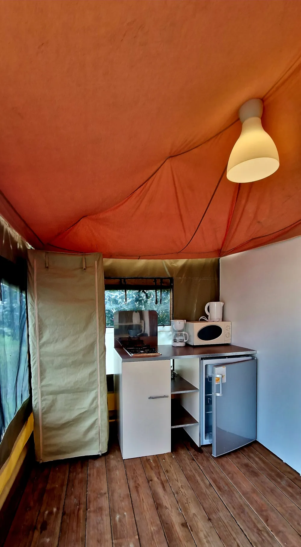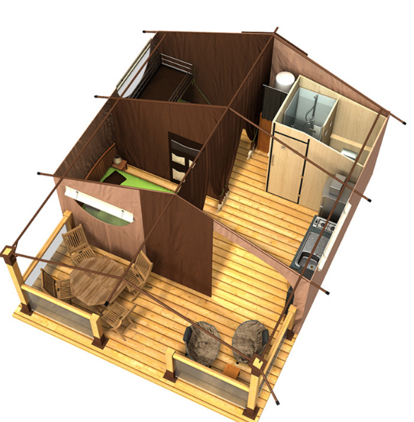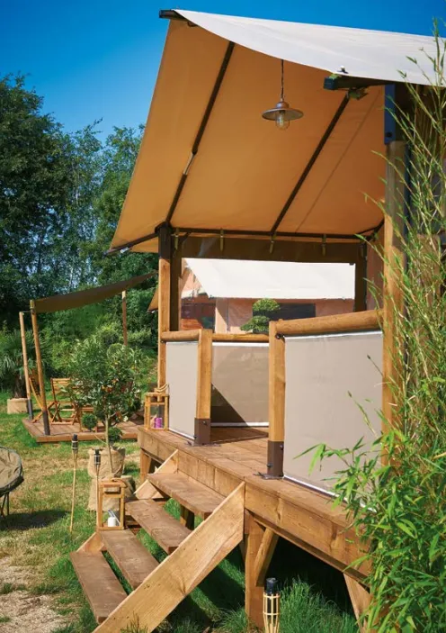 Une tente toute équipée sans sanitaire. Des vacances économiques mais avec le confort !