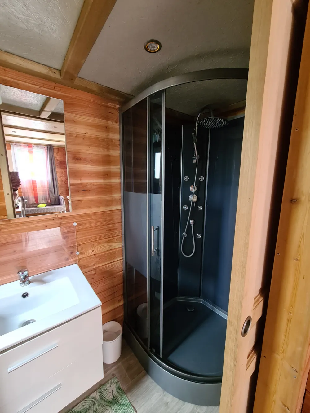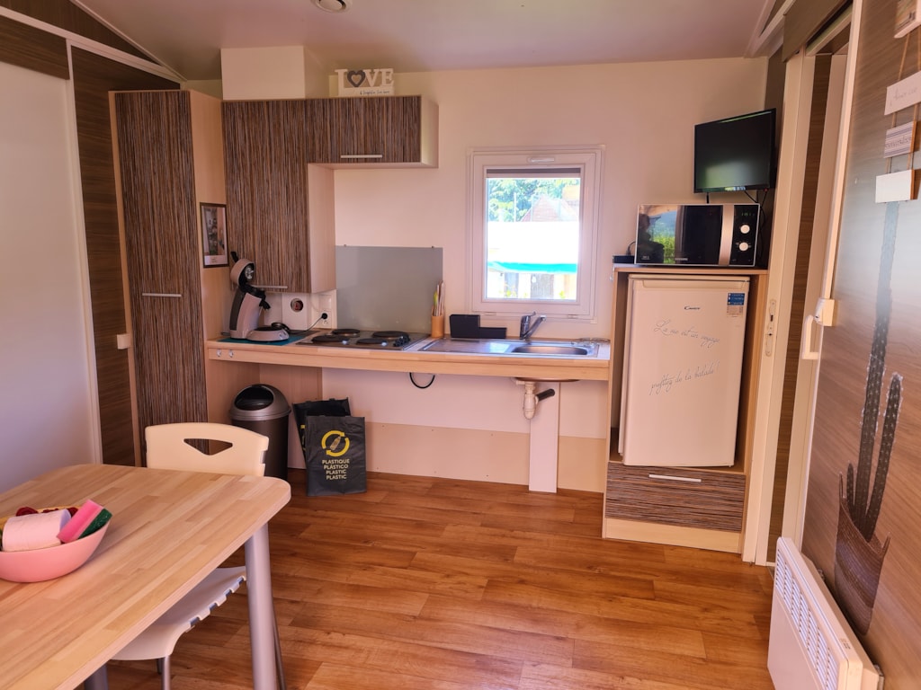 Dieses gemütliche Mobilheim wurde im Hinblick auf eine nachhaltige Entwicklung entworfen und bietet Ihnen ein einzigartiges Erlebnis im Einklang mit der Natur. Es vereint modernen Komfort und Umweltverantwortung und verfügt über alle notwendigen Annehmlichkeiten für einen angenehmen Aufenthalt. Die Materialien und Ausstattung wurden sorgfältig ausgewählt, um die Umweltbelastung zu minimieren und gleichzeitig einen warmen und einladenden Raum zu gewährleisten. Dank seiner idealen Lage im Herzen der Natur ist es der perfekte Ort, um einen komfortablen Aufenthalt zu genießen und gleichzeitig nah an der natürlichen Umgebung zu sein, die Sie umgibt.