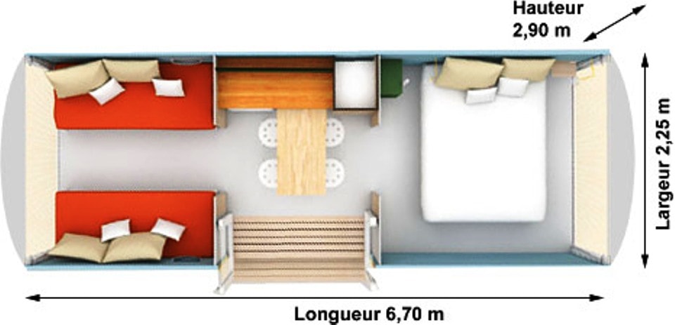 Die Pacific Mobilheime auf dem Campingplatz de l'Orival bieten ein Urlaubserlebnis im Einklang mit der Natur. Sie wurden umweltbewusst gestaltet und vereinen modernen Komfort, nachhaltige Materialien und eine warme Atmosphäre.
