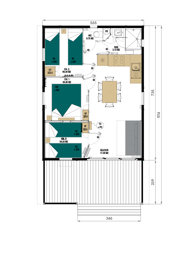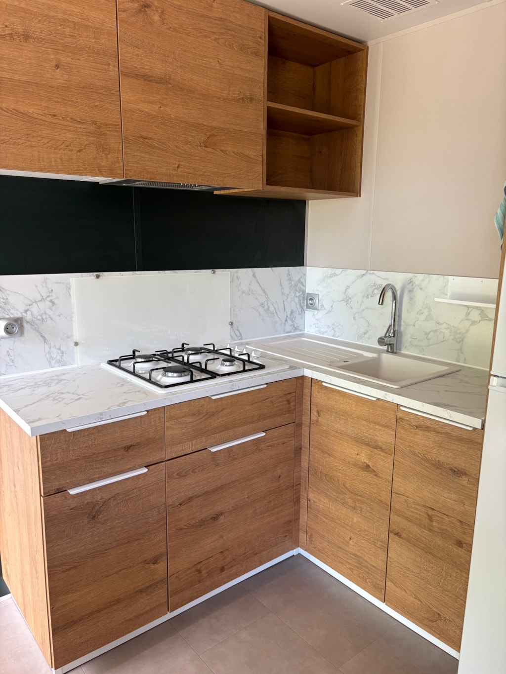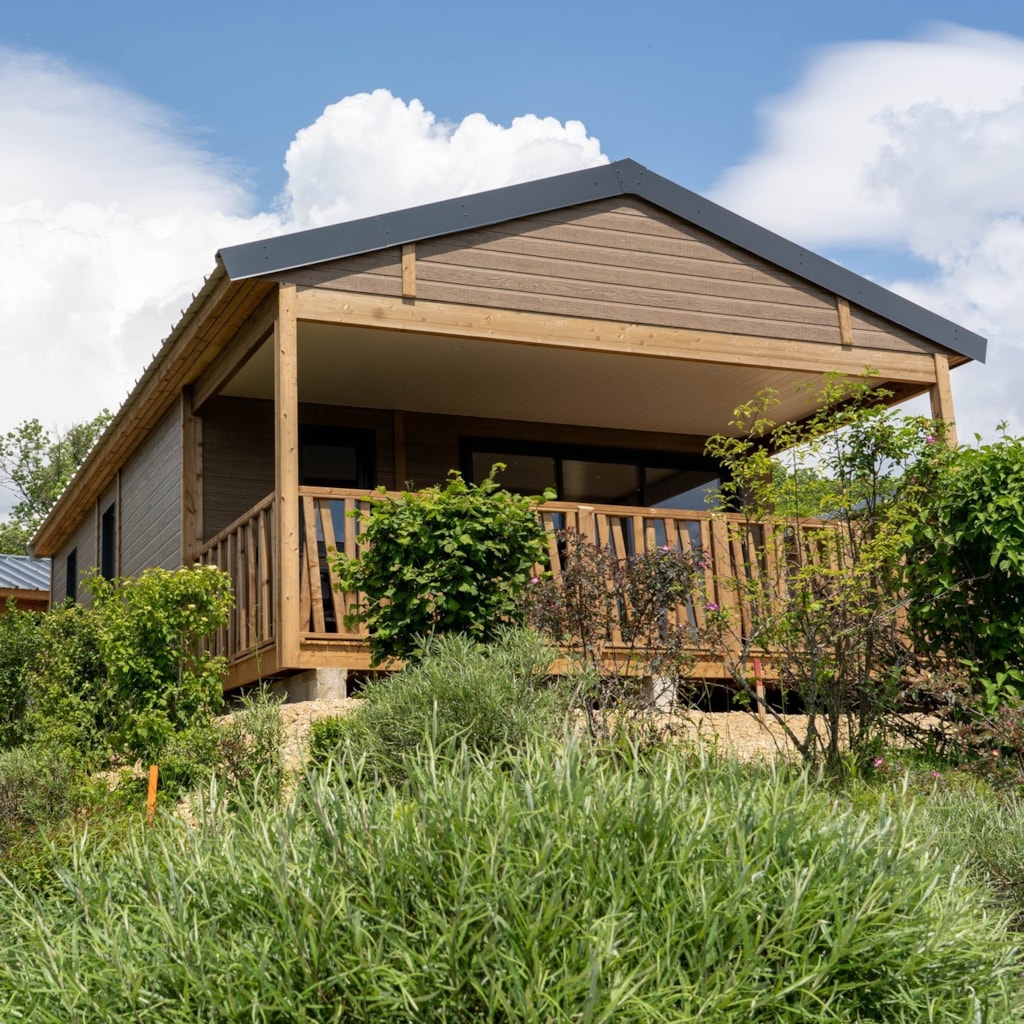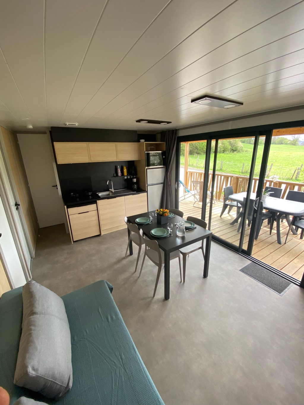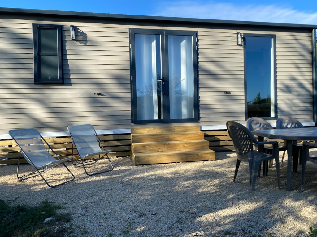 Chalet Tout confort NEUF spacieux 35 m², grande terrasse extérieure.
