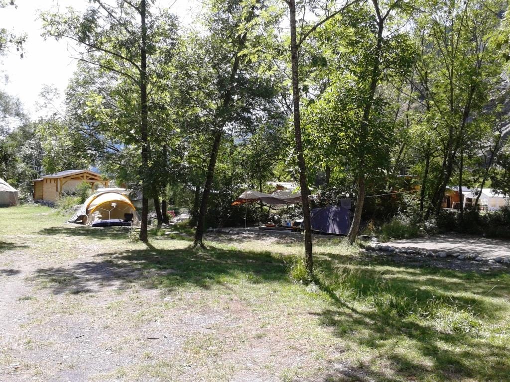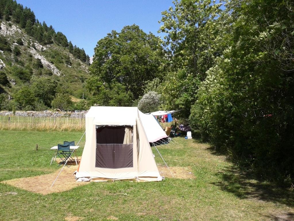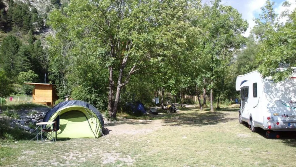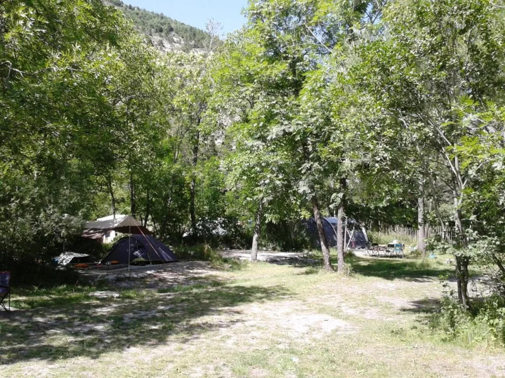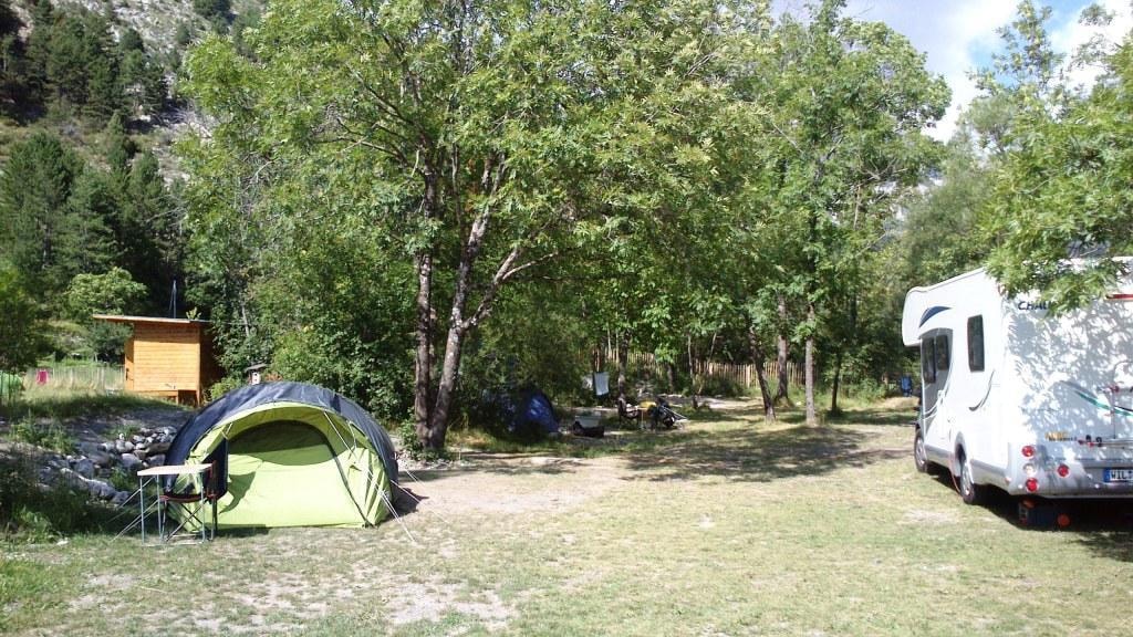 Schöne Gras-Stellplätze für Zelte; sonnig oder im Schatten.