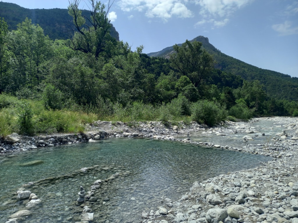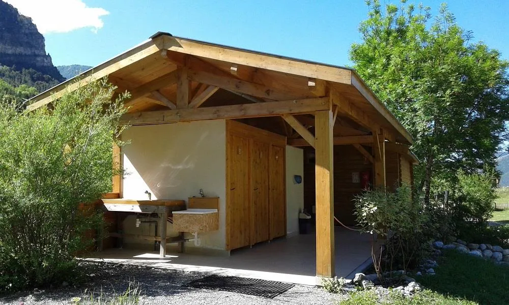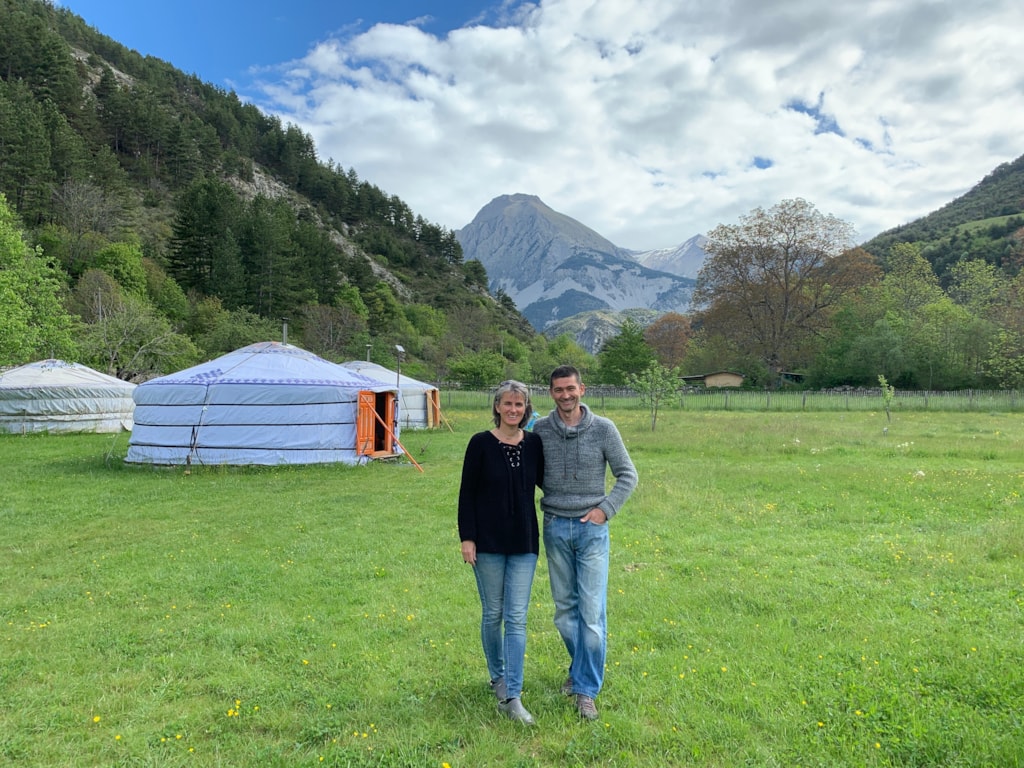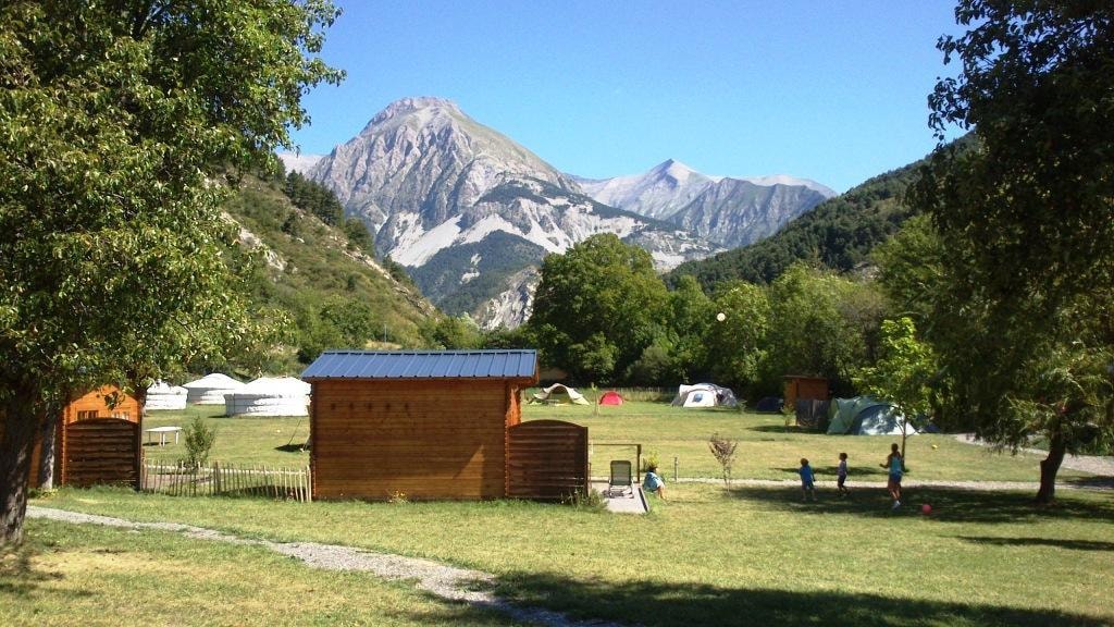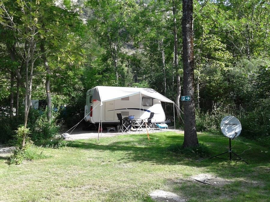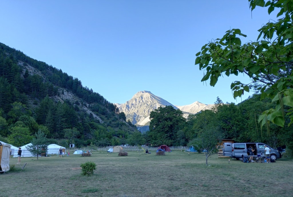 Schöne Gras-Stellplätze für Zelte; sonnig oder im Schatten.