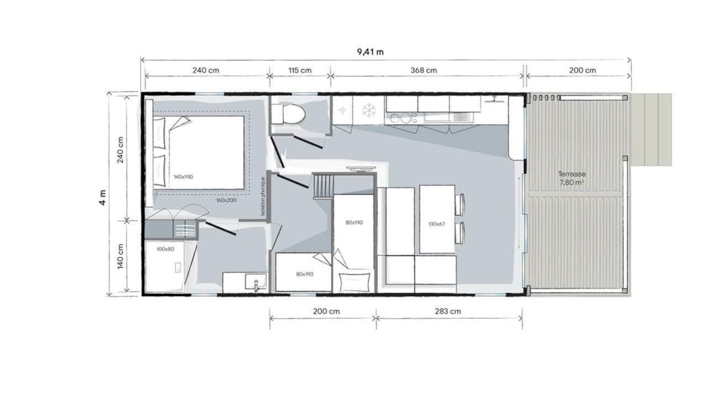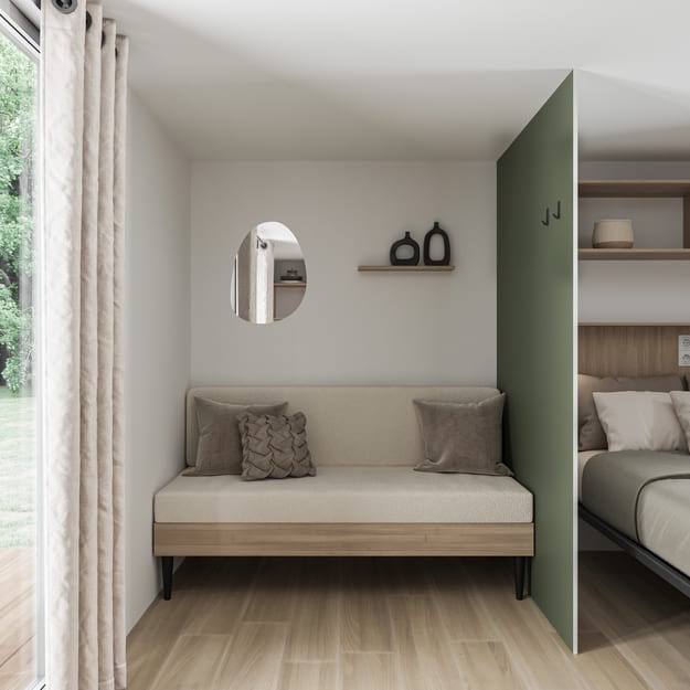 Der unverzichtbare Komfort für die Familie. Ein funktionales Mobilheim, das dank verstärkter Isolierung das ganze Jahr über angenehme Temperaturen garantiert.