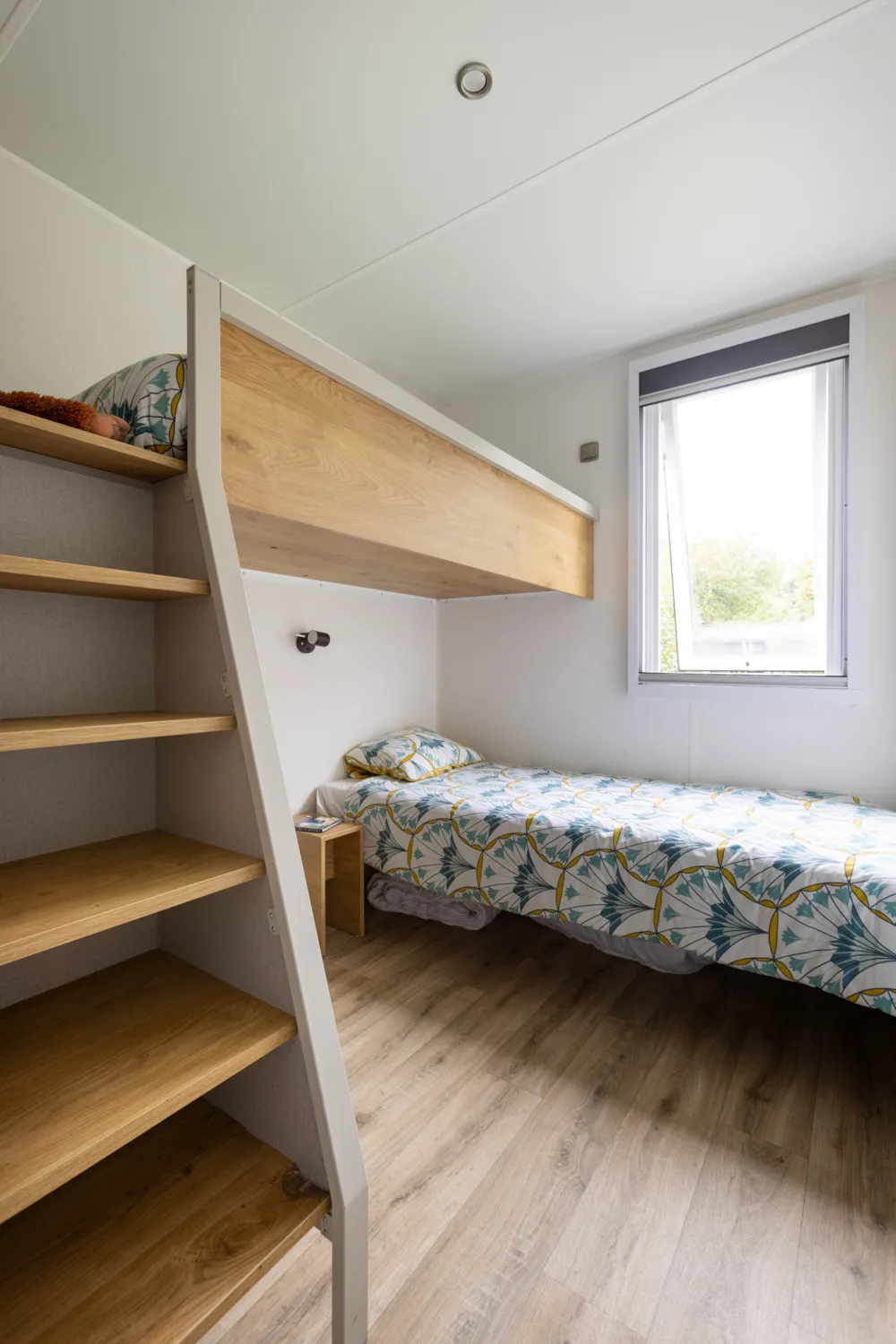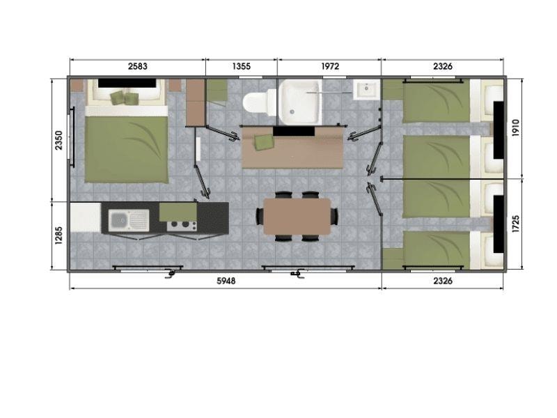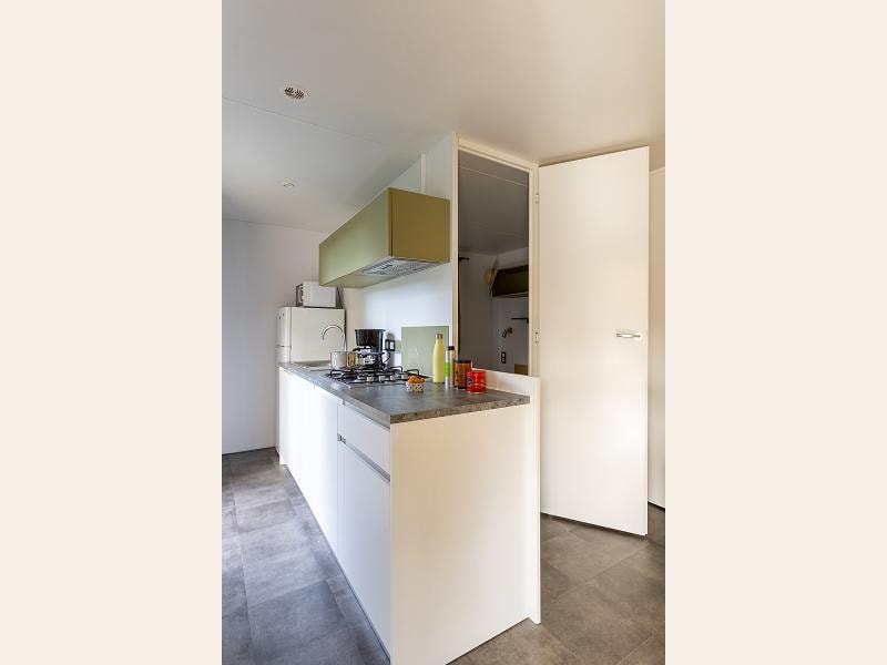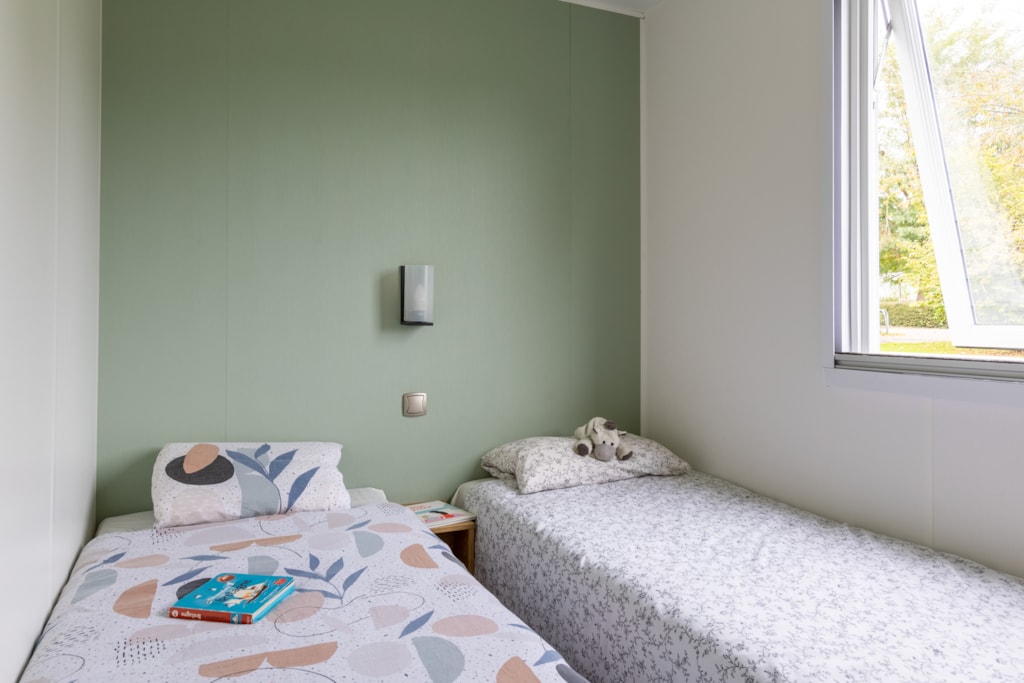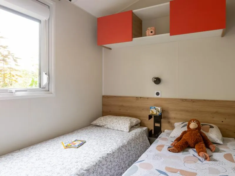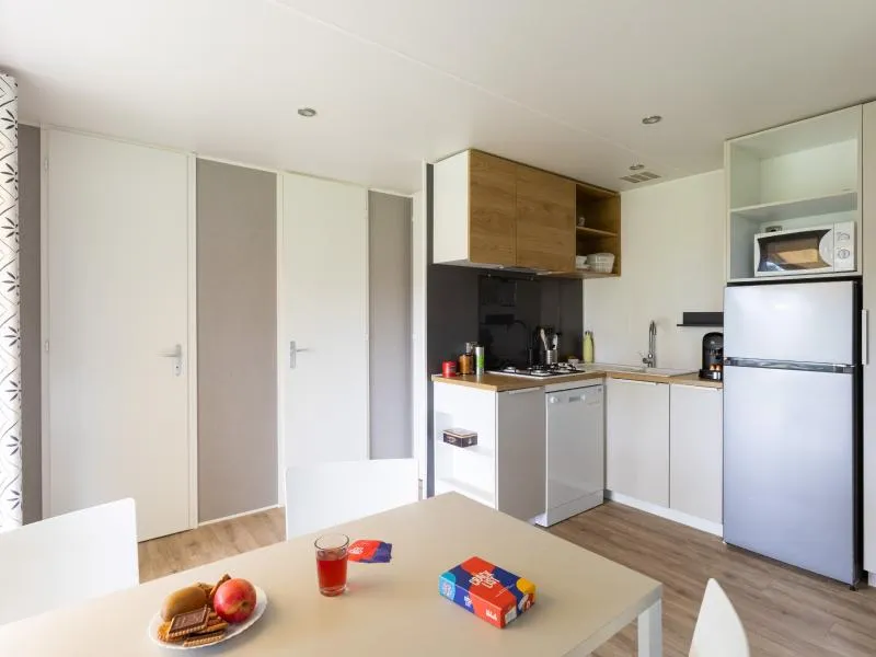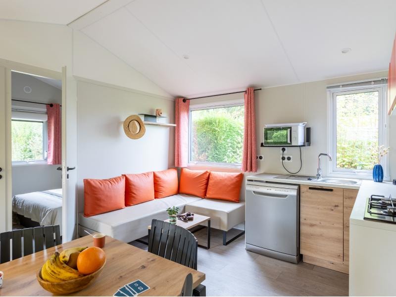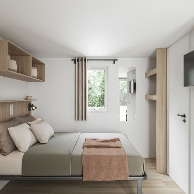Der unverzichtbare Komfort für Großfamilien (3 Zimmer). Ein geräumiges und gemütliches Mobilheim für bis zu 6 Personen mit verstärkter Isolierung für Komfort zu jeder Jahreszeit.