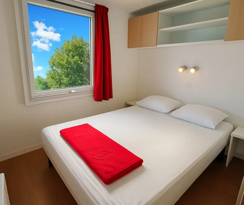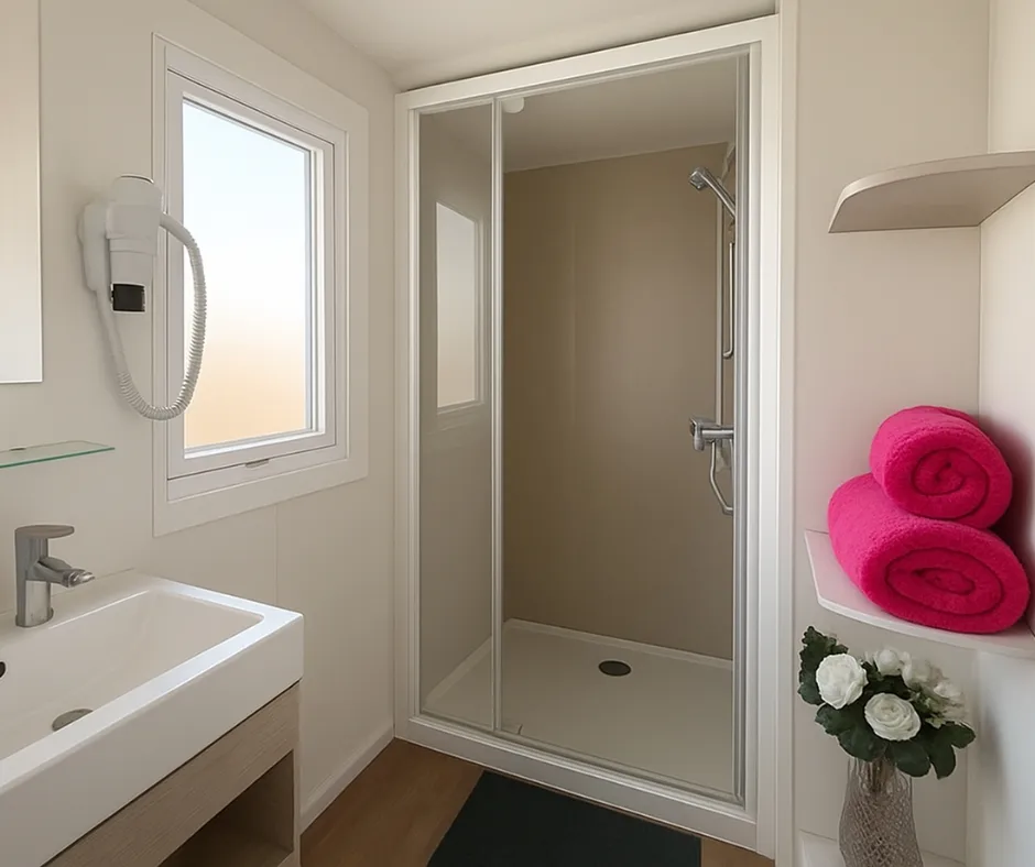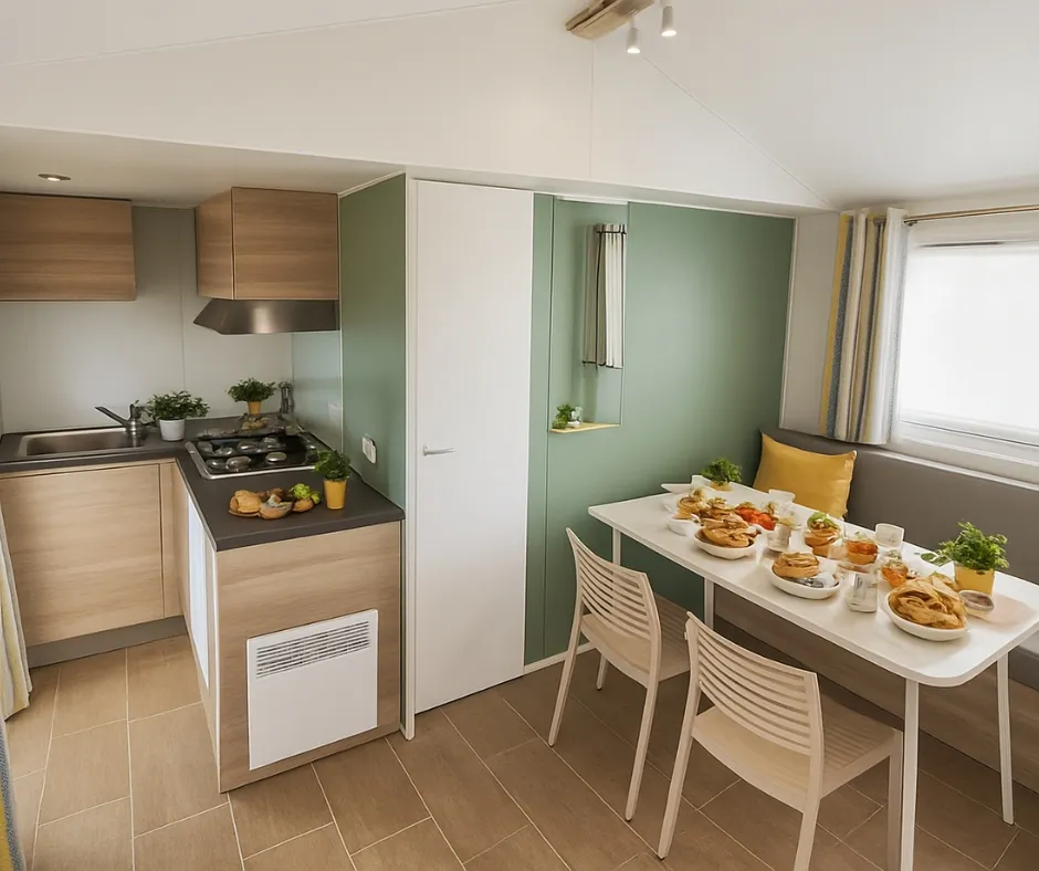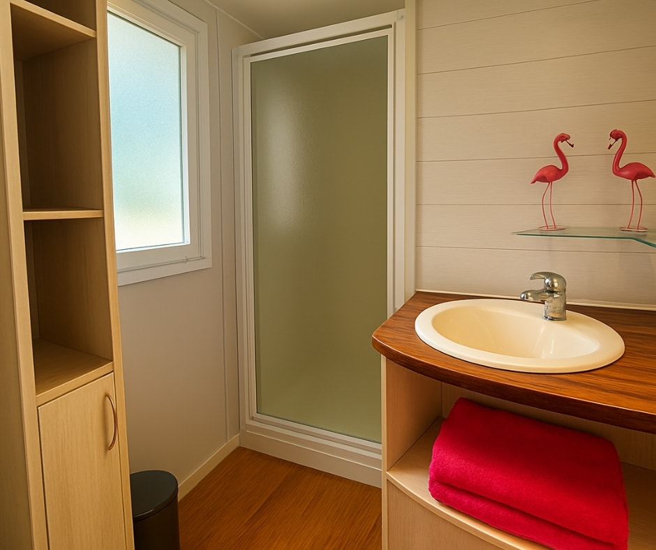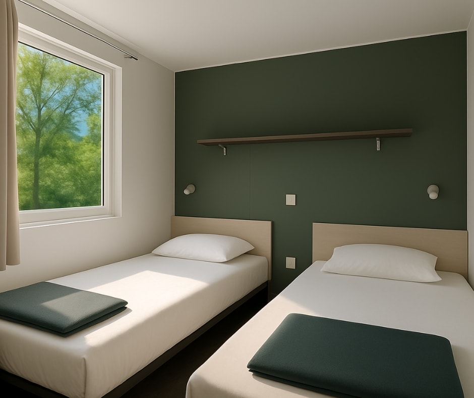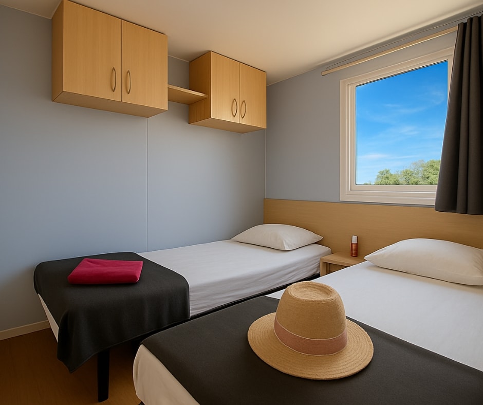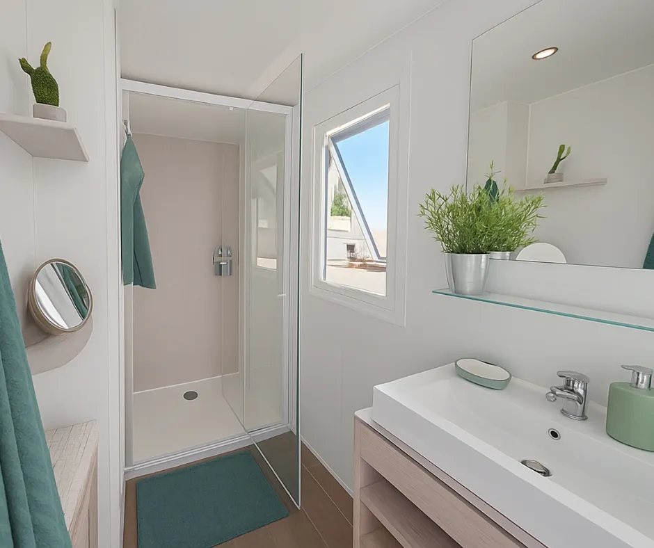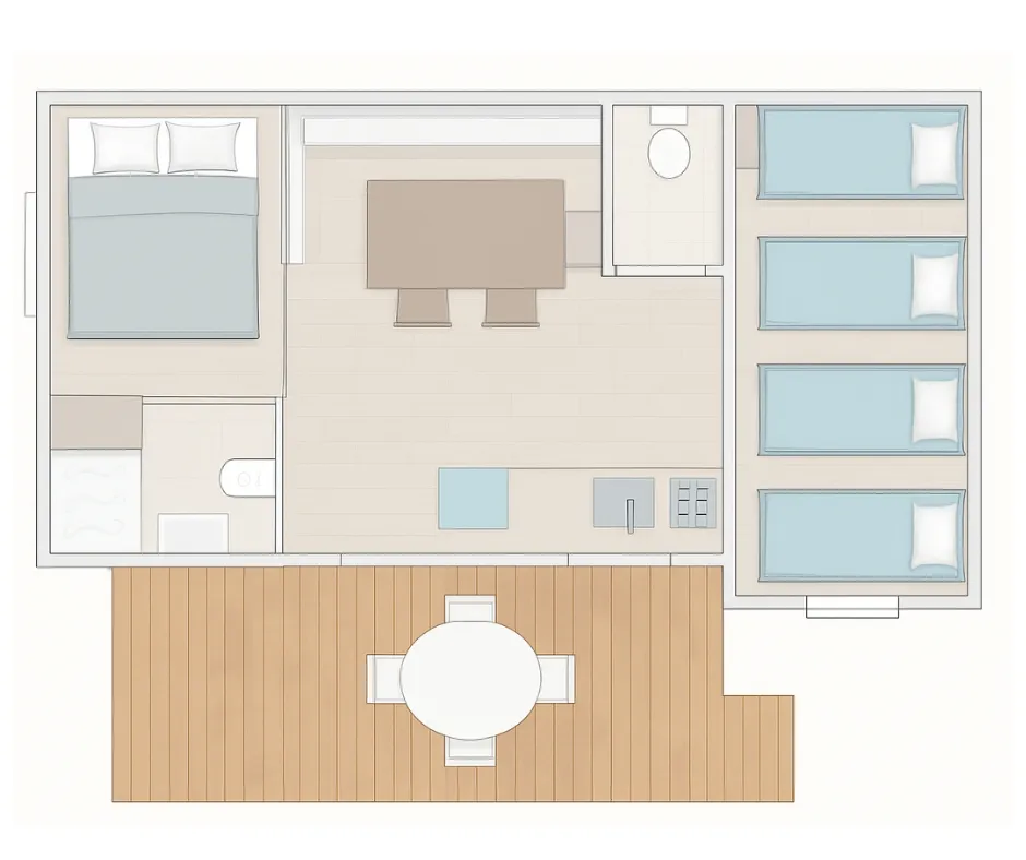 Das Mobilheim Cottage 2+ ist auch in einer barrierefreien Version erhältlich. Es wurde vollständig für Menschen mit Behinderung konzipiert und angepasst, damit diese ihren Aufenthalt ohne Schwierigkeiten genießen können. Um ein barrierefreies Mobilheim zu buchen, reservieren Sie einfach ein Cottage 2+ und geben Sie in den Kommentaren an, dass Sie eine barrierefreie Unterkunft wünschen.