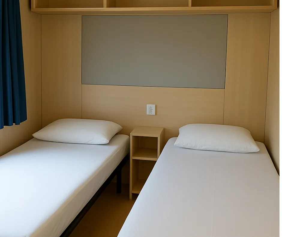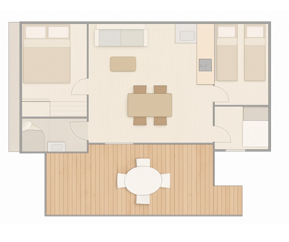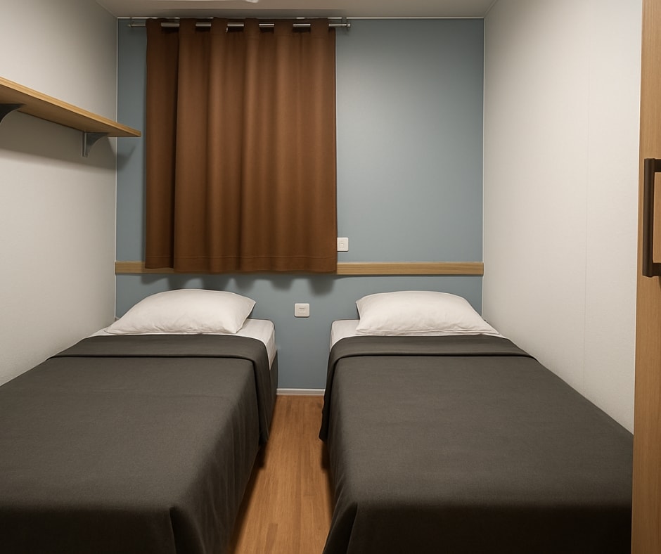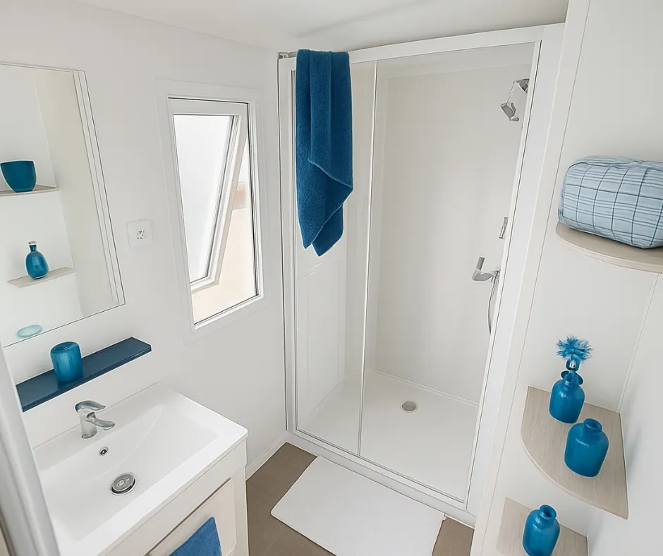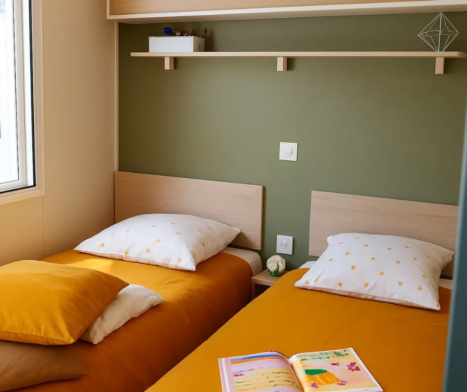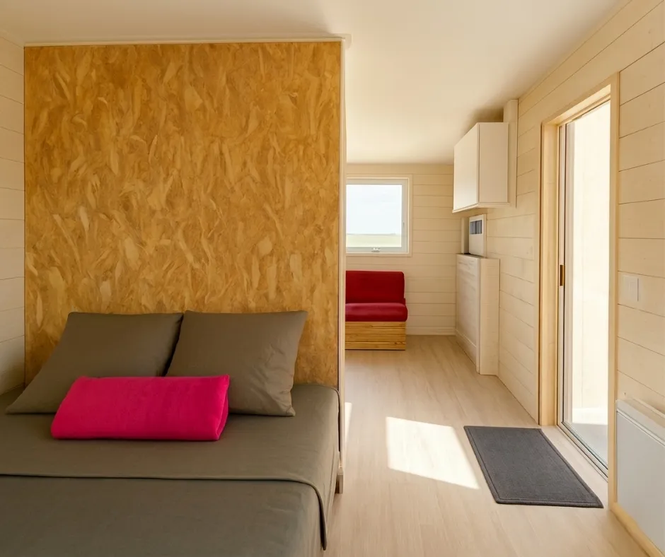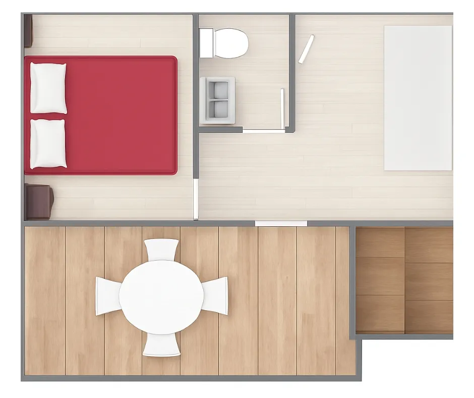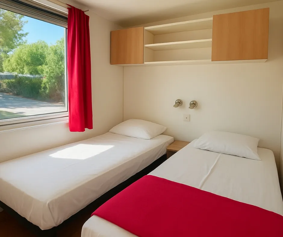 Das Mobilheim Cottage 2+ ist auch in einer barrierefreien Version erhältlich. Es wurde vollständig für Menschen mit Behinderung konzipiert und angepasst, damit diese ihren Aufenthalt ohne Schwierigkeiten genießen können. Um ein barrierefreies Mobilheim zu buchen, reservieren Sie einfach ein Cottage 2+ und geben Sie in den Kommentaren an, dass Sie eine barrierefreie Unterkunft wünschen.
