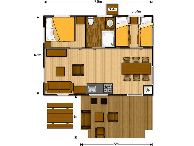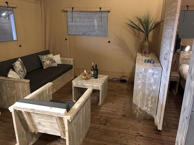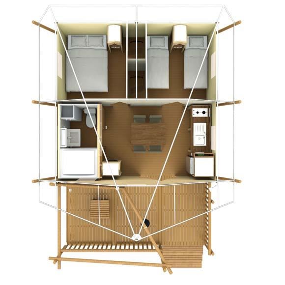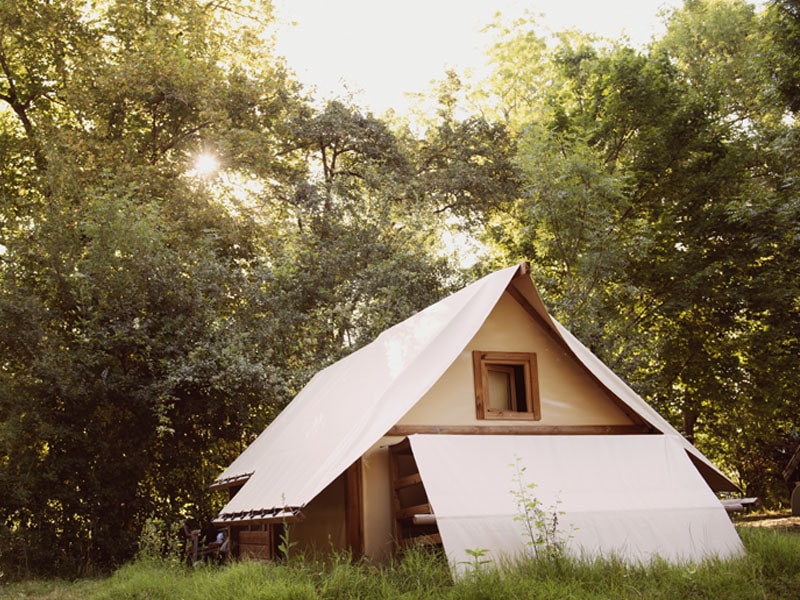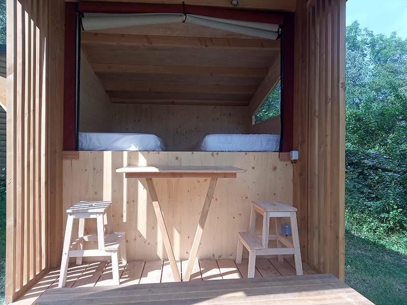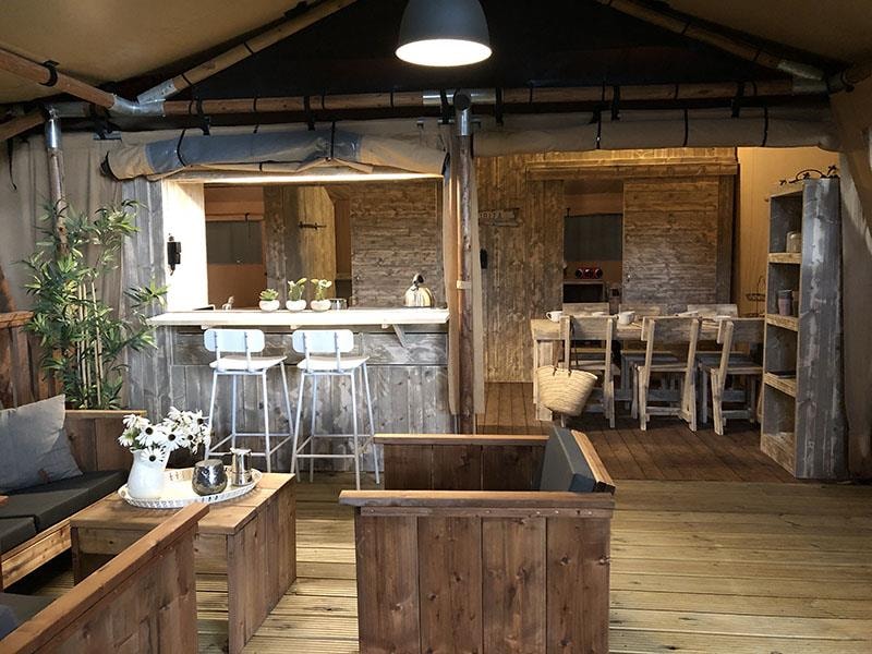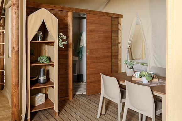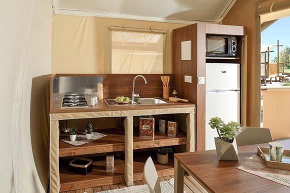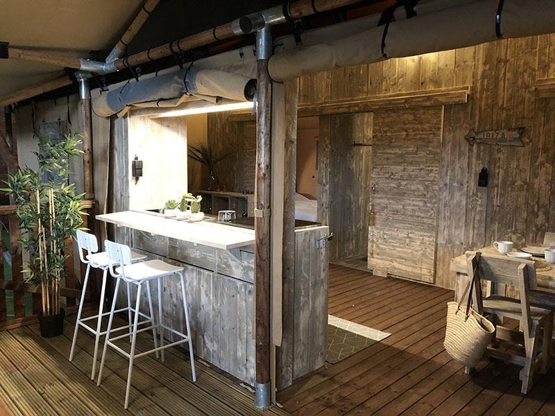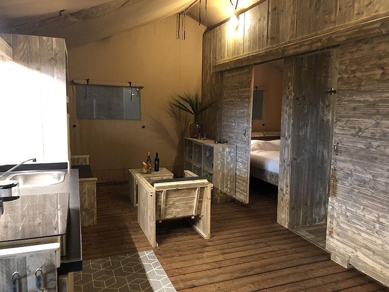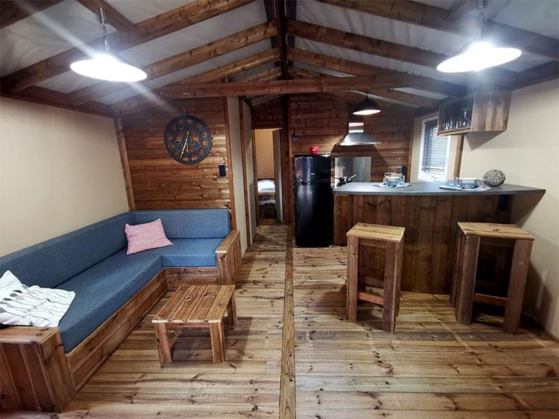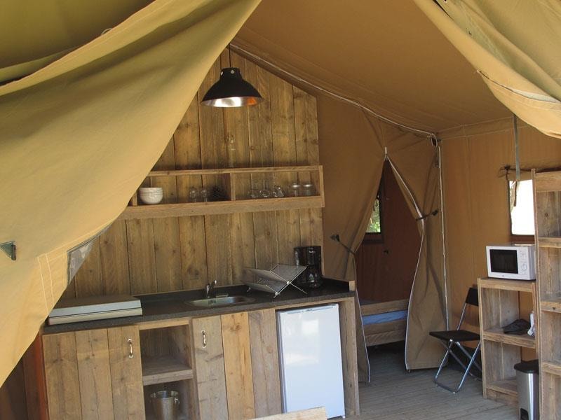 Entfliehen Sie in unser bezauberndes Safari Cabanon Zelt, ein wahres Paradies für bis zu 5 Personen. Mit seinen 25 m² Charme und zusätzlichen 10 m² taucht dieses Zelt Sie in ein einzigartiges Erlebnis im Herzen der Natur ein. In einer autofreien Zone gelegen, verbindet es auf wunderbare Weise die Authentizität eines Zeltes mit dem Komfort eines Zuhauses. Liebevoll in Frankreich gefertigt, verfügt es über ein gemütliches Schlafzimmer mit einem Doppelbett und ein zweites Zimmer mit drei Einzelbetten. Der Wohn-/Küchenbereich ist bestens ausgestattet, um all Ihre Bedürfnisse zu erfüllen. Erwachen Sie mit dem süßen Gesang der Vögel, entspannen Sie auf Ihrer sonnigen Terrasse und lassen Sie sich von der Magie der Natur verzaubern, ohne auf Komfort zu verzichten. Gönnen Sie sich eine friedliche Nachtruhe in unserer bequemen Bettwäsche und schaffen Sie unvergessliche Erinnerungen mit Familie oder Freunden.