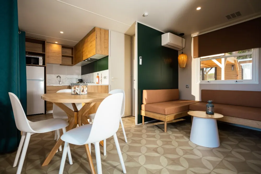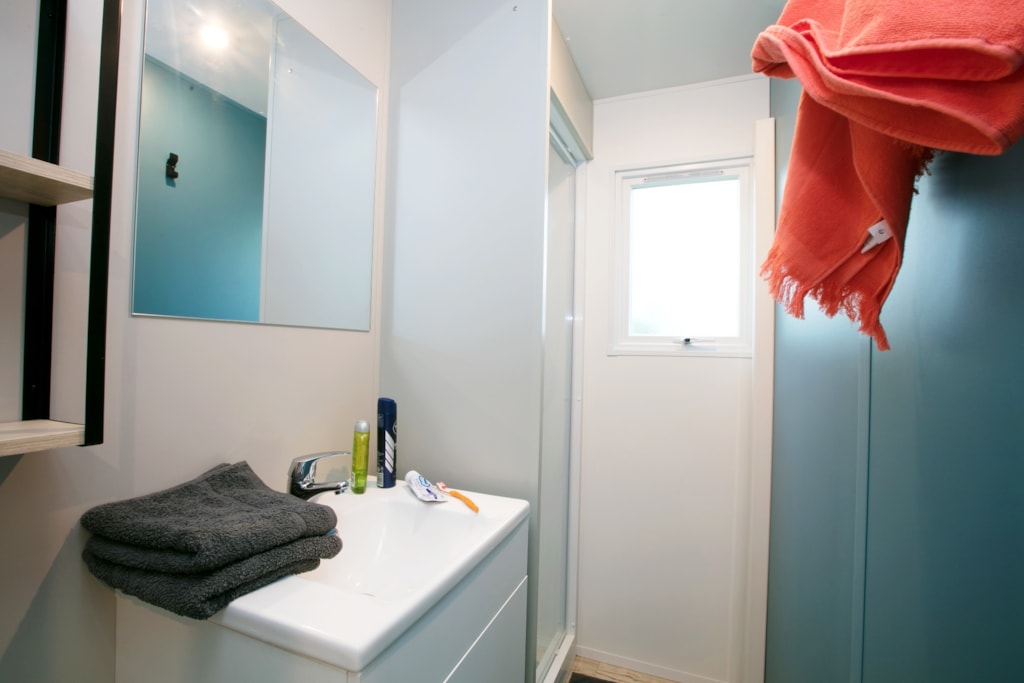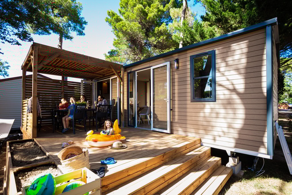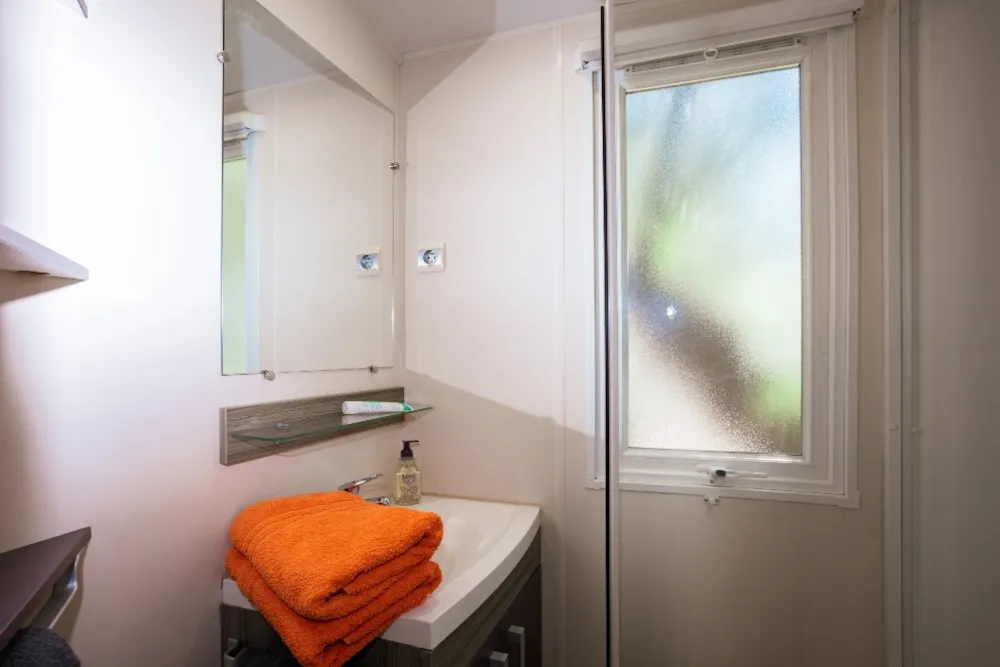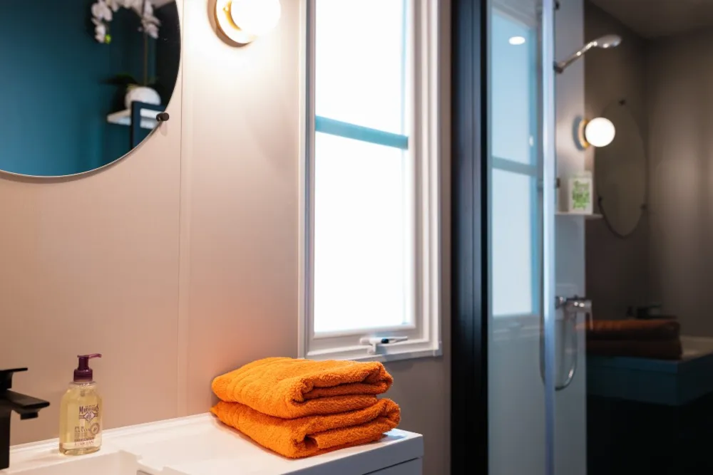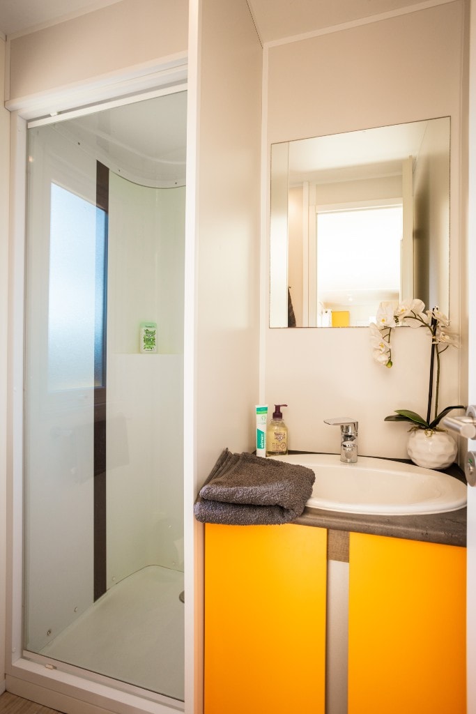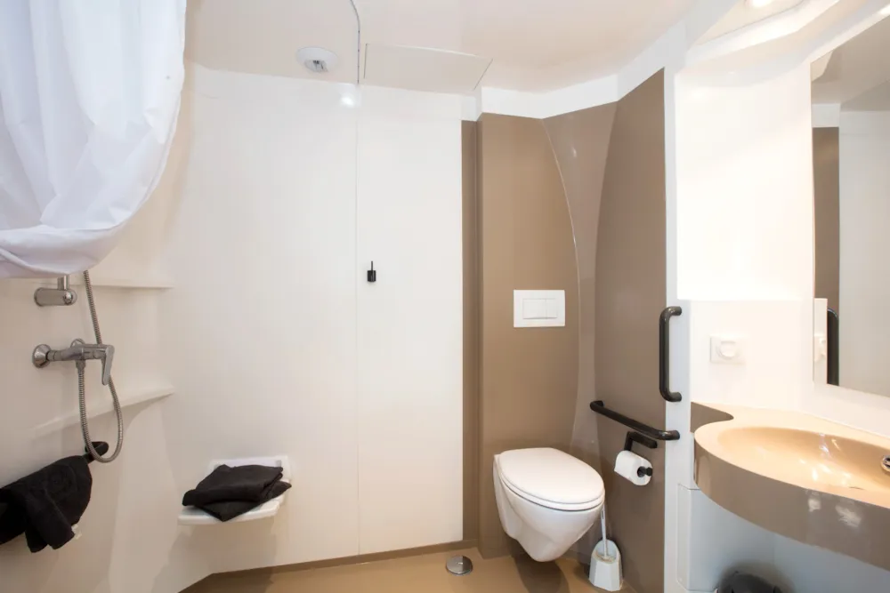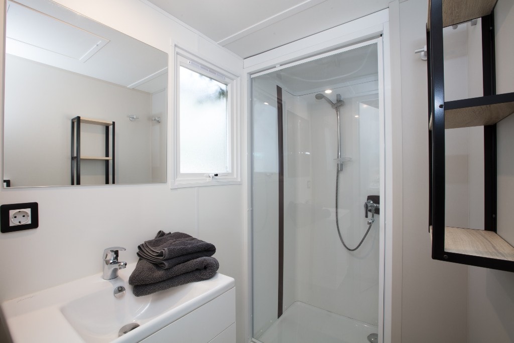 Diese Kategorie von Stellplätzen verfügt über eigene Sanitäranlagen mit Dusche, Waschbecken und WC. Sie müssen nichts mehr teilen: Genießen Sie Ihren eigenen Bereich, der immer sauber und jederzeit zugänglich ist, für einen Aufenthalt in aller Ruhe.