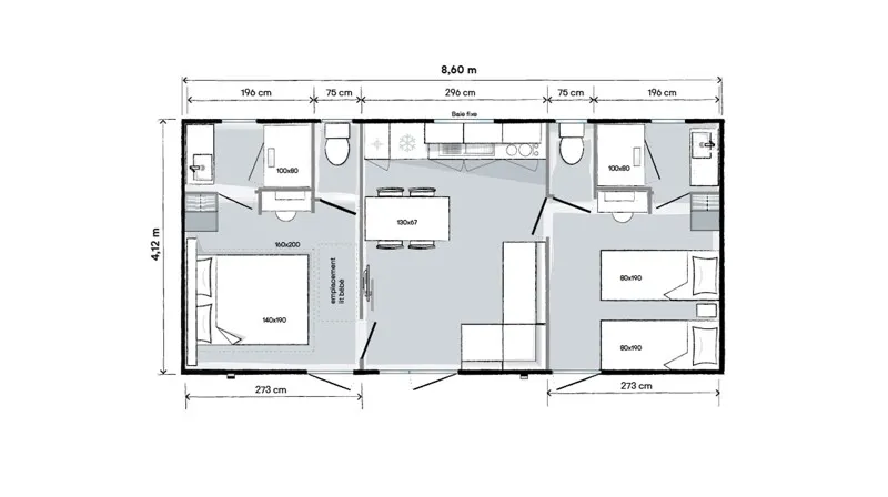 Alle Stellplätze GRAND CONFORT XL sind mit einem 10-Ampere-Stromanschluss (Adapter erforderlich), einem Wasseranschluss und einem Abwasserablauf ausgestattet. Sie haben eine durchschnittliche Fläche von 100 bis 110 m² und bieten Platz für bis zu 4 Erwachsene und 2 Kinder.