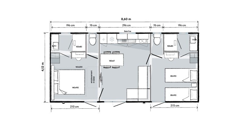 Alle Stellplätze der Kategorie GRAND CONFORT STANDARD sind mit einem 10-Ampere-Stromanschluss (Adapter erforderlich), einem Wasseranschluss und einem Abwasserablauf ausgestattet. Sie haben eine durchschnittliche Fläche von 80 m² und bieten Platz für bis zu 4 Erwachsene und 2 Kinder.