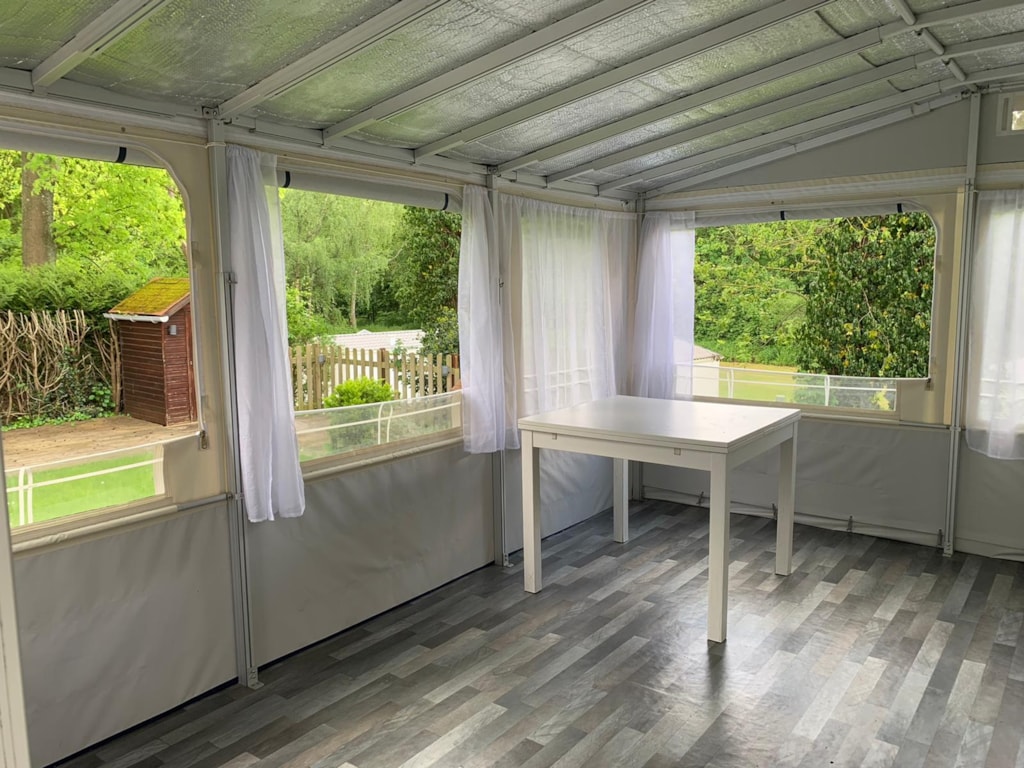 Dieses brandneue Mobilheim verfügt über drei Schlafzimmer. Es ist mit einem Whirlpool auf der Terrasse und einer hochwertigen Klimaanlage ausgestattet. Das Hauptschlafzimmer bietet ein Doppelbett (140 x 190 cm), die beiden anderen jeweils zwei Einzelbetten (80 x 190 cm), insgesamt also vier Einzelbetten, sowie ein Schlafsofa. Kissen, Matratzenschoner und Bettdecken sind vorhanden. Das Badezimmer ist mit Dusche, Waschbecken und WC ausgestattet. Der Wohnbereich verfügt über eine Küchenzeile und einen Essbereich mit Sitzbank und Stühlen. Zur weiteren Ausstattung gehören ein Flachbildfernseher, Geschirr, Küchenutensilien, eine Mikrowelle, eine Kaffeemaschine, eine Terrasse, Gartenmöbel, Liegestühle, ein Kühlschrank und ein Gaskocher. Es besteht aus zwei Schlafzimmern mit je einem Doppelbett (140 x 190 cm) und zwei weiteren Schlafzimmern mit je zwei Einzelbetten (80 x 190 cm), also insgesamt vier Einzelbetten. Zur Ausstattung gehören Kissen, Matratzenschoner und Bettdecken, ein Badezimmer mit Dusche, Waschbecken und WC, ein Hauptraum mit Kochnische und ein Essbereich mit Sitzbank und Stühlen. Die Unterkunft ist außerdem ausgestattet mit Flachbildfernseher, Geschirr, Küchenutensilien, Mikrowelle, Kaffeemaschine, Terrasse, Gartenmöbeln, Liegestühlen, Kühlschrank und Kochfeld.