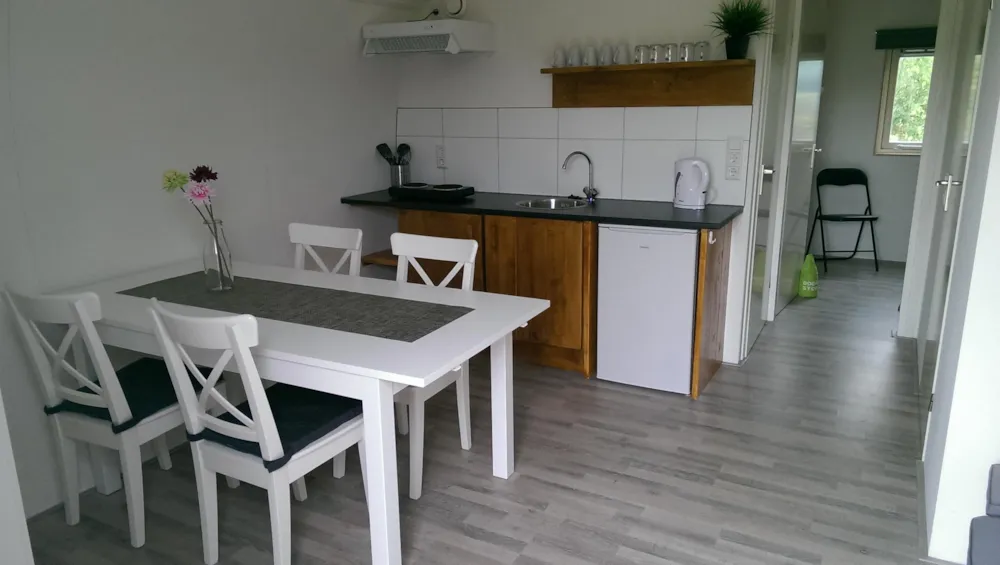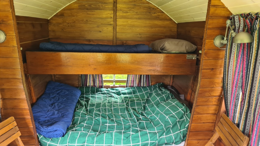 Onze Glampinghouse heeft 2 slaapkamers waarvan 1 met stapelbed en 1 met 2-persoonsbed. Bedlinnen kunt u bij ons huren of zelf meenemen.