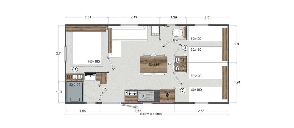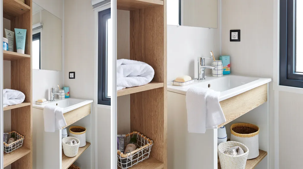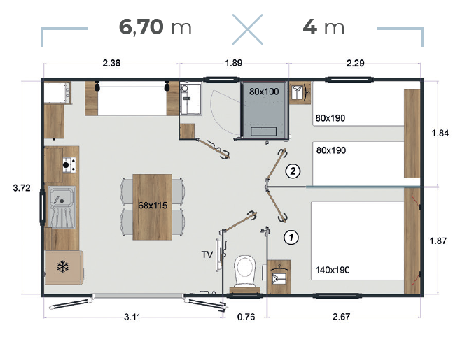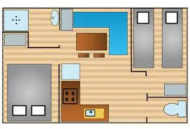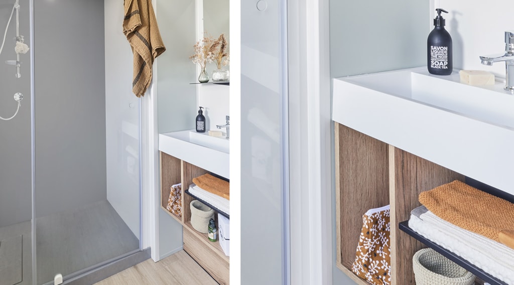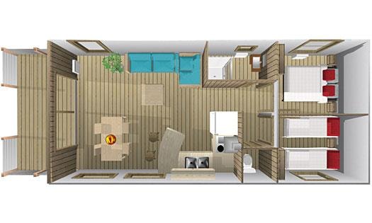 Unsere stilvollen und erschwinglichen Lodges sind ideal für Naturliebhaber und fügen sich harmonisch in die Landschaft ein. Die Holzverkleidung sorgt für eine charmante Atmosphäre.
