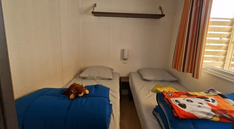 1 Schlafzimmer mit 2 Einzelbetten 80×190 cm.