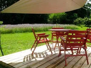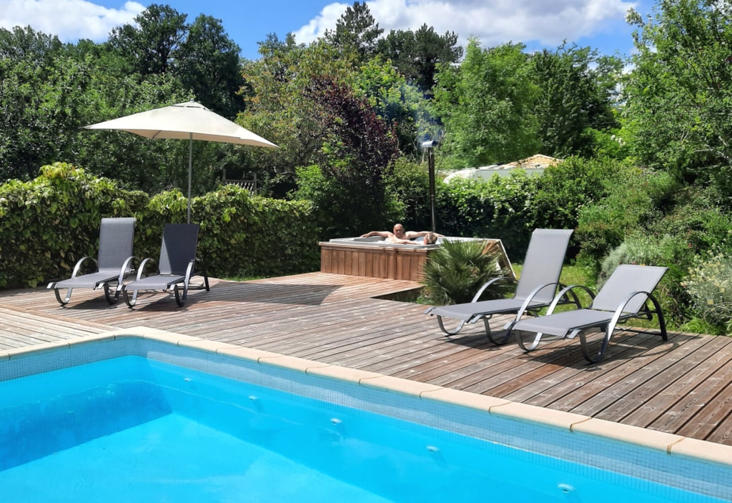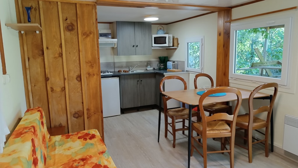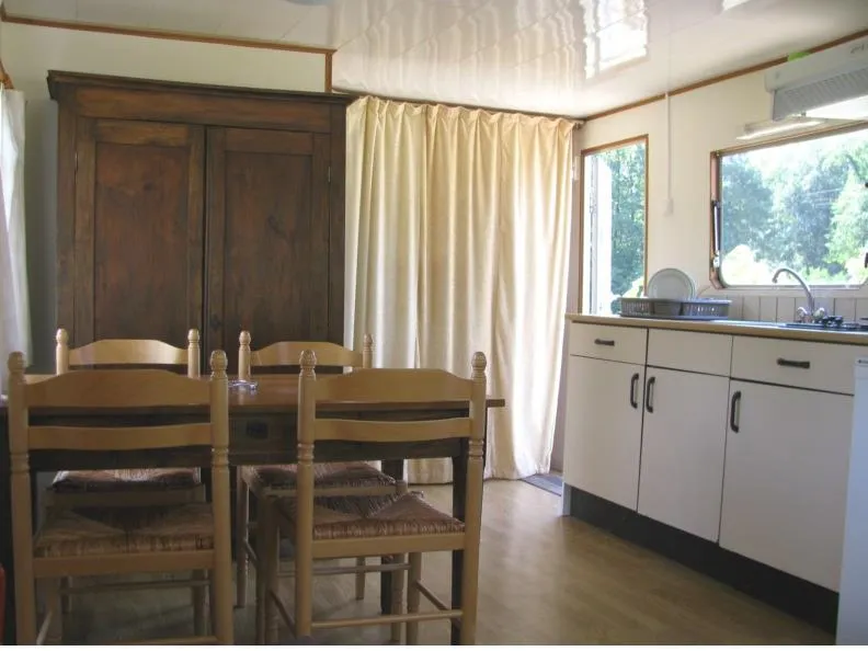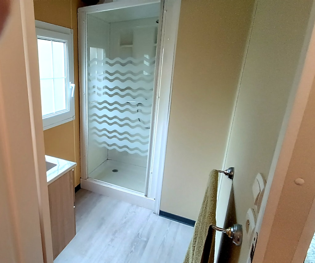 Sehr großes Mobile-Haus von 40 m² mit Fernsehen: Bettwäsche, Bettbezug, Kissenköpfe, Kissenbezugschutz und Matratzenschoner für 1 Doppelbett sowie 2 Badetücher, 2 Handtücher, Geschirrtücher sind im Mietpreis bei Champ enthalten de Guiral. Fön im Badezimmer