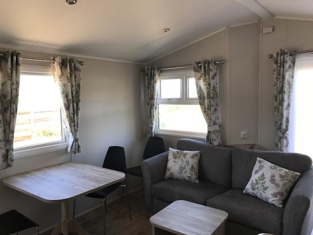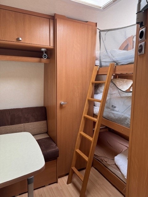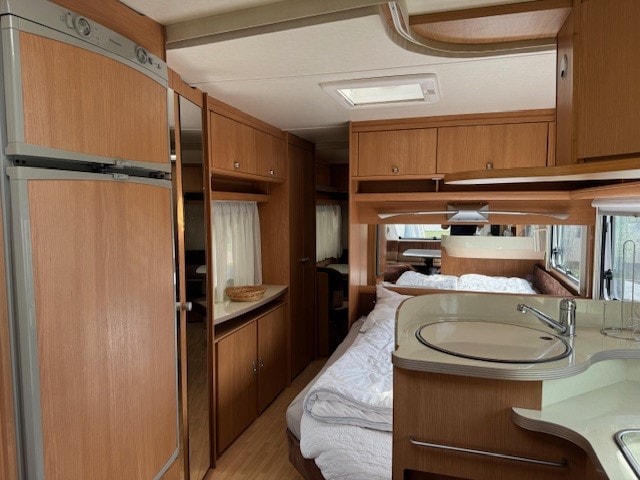 Dieser Wohnwagen ist ideal für Familien, die einen gemütlichen Urlaub mit Komfort verbringen möchten. Er ist ausgestattet mit Küchenutensilien wie Kaffeemaschine, Toaster, Wasserkocher, Kühlschrank, Kochplatten, Minibackofen sowie Geschirr, Töpfen und Besteck. Eine Essecke lädt zu gemeinsamen Mahlzeiten ein.