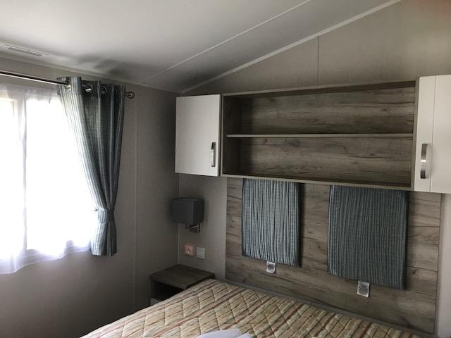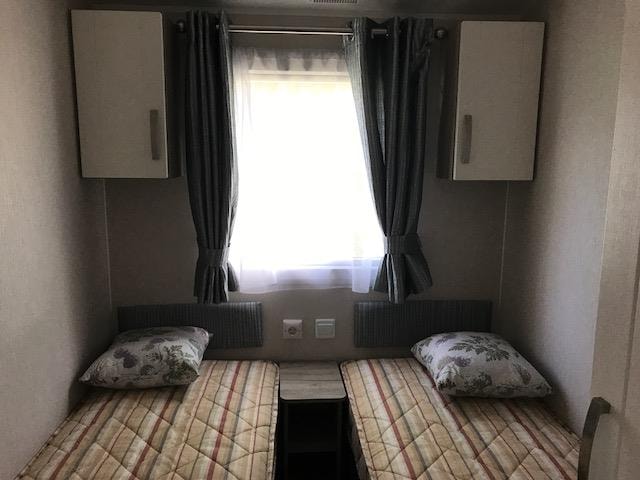 Bettdecken und Kissen sind vorhanden, und der Wohnwagen verfügt über eine Heizung.