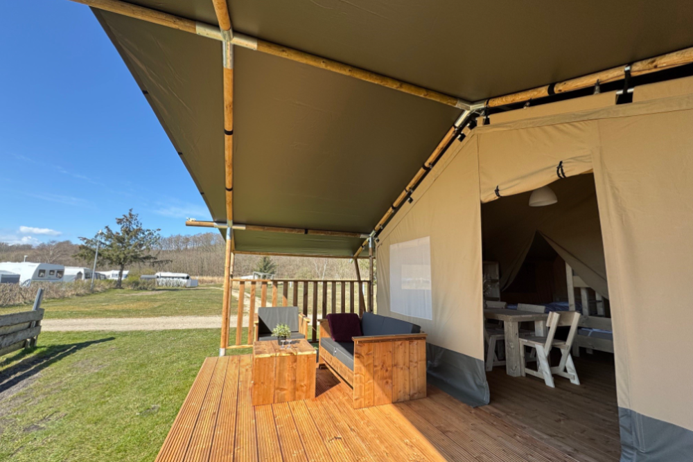Unsere zwei geräumigen Hütten sind ideal für Familien oder Gruppen, die komfortabel wohnen möchten und trotzdem die echte Campingatmosphäre inmitten der Natur erleben wollen.
