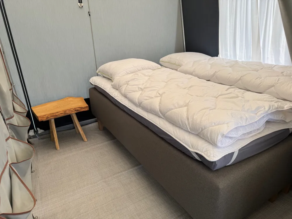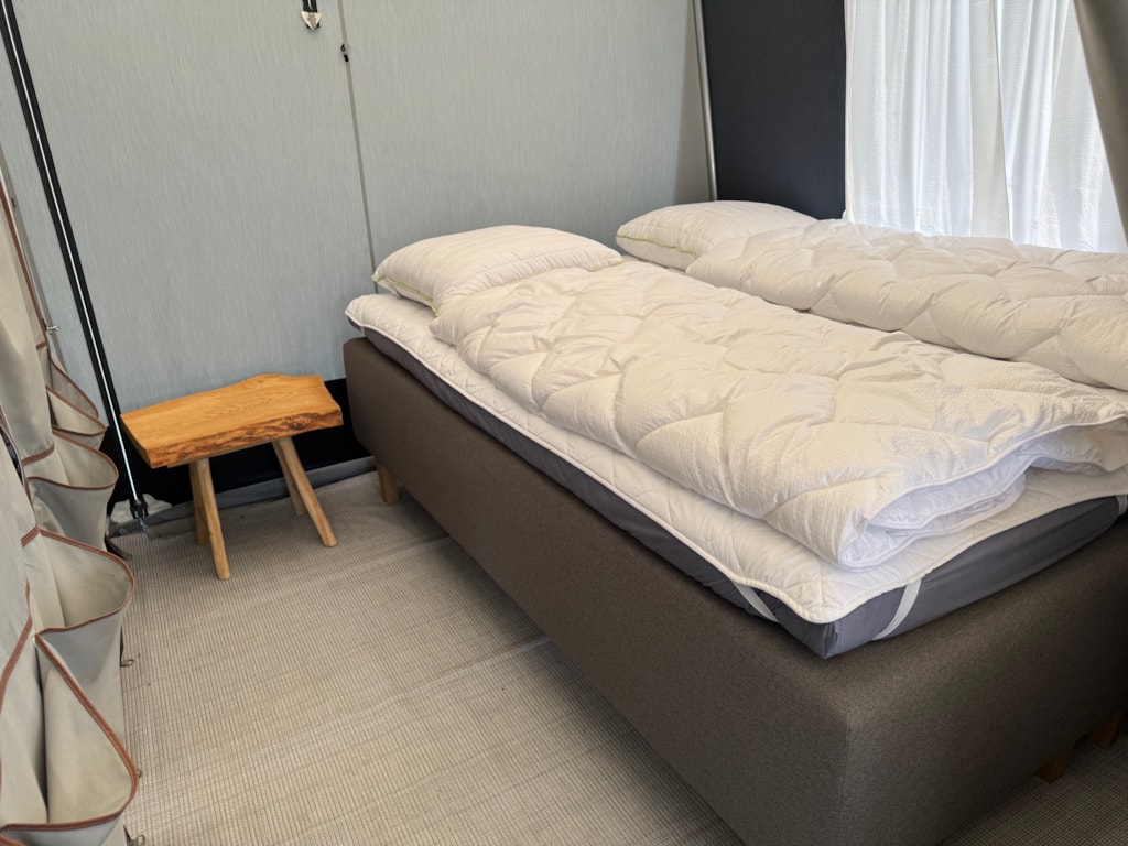 Wir haben drei kleine Hütten ohne Toiletten und fließendes Wasser. Es gibt Decken und Kissen, Küchenutensilien, Kaffeemaschine, Kühlschrank und einen Mini-Ofen mit 2 Kochplatten. Doppelpett für 2 Personen und ein Loft ebenfalls für 2 Personen. In nur 50m Entfernung befinden sich Toiletten und Duschen, die nur von Hüttengästen genutzt werden dürfen. Im Sanitärgebäude befindet sich auch eine voll ausgestattete Küche mit eingebautem Ofen, Spülmöglichkeiten, Mikrowelle und Gasbrenner zum Kochen. Die Hütten können auch nur für eine Nacht gebucht werden, außer in den KW 28, 29 30 und 31 (dann nur wochenweise von Samstag bis samstag). Bitte denken Sie daran, Ihre eigene Bettwäsche und Bezüge für die Einzelmatratzen mitzubringen sowie (Geschirr-)Handtücher. Gegen Gebühr können Sie Bettwäsche auch an der Rezeption leihen. Die Hütten müssen am Abreisetag vor 12 Uhr geräumt werden. Sie können entweder selbst putzen, oder die Endreinigung kostenpflichtig dazu buchen.
