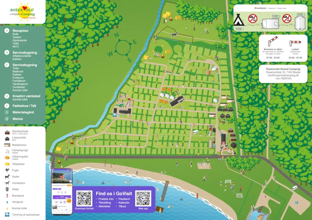 Rosenvold Strand Camping liegt in landschaftlich schöner Umgebung direkt an der Vejle Fjord, mit Wald auf der einen Seite und einem gemütlichen kleinen Hafen auf der anderen. Hier erhältst du einen Stellplatz, bei dem Ruhe und Natur den Rahmen für deinen Urlaub bilden – ideal für Familien mit Kindern und Senioren, die Entspannung oder gemütliche Aktivitäten im Freien suchen. Zwischen den Einheiten ist viel Platz, und alle Stellplätze können genutzt werden, egal ob du mit Zelt, Wohnwagen oder Wohnmobil anreist.