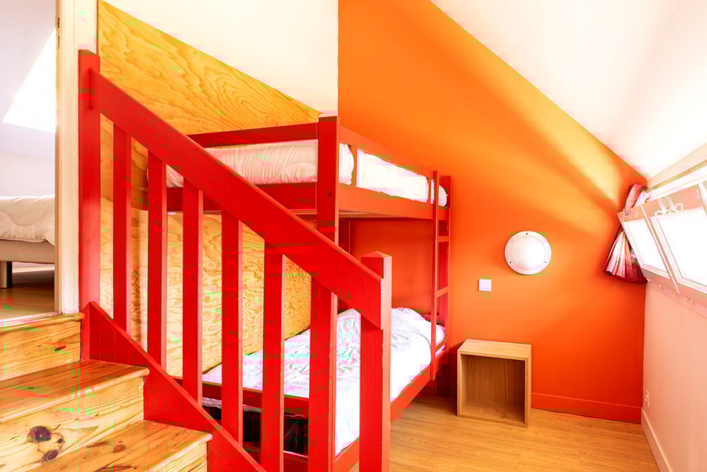 A home for your holiday - 6 Gîtes 4/5 sleeps 32 m², 1 bathroom 1 room with 1 double bed (160*200 cm), 1 corridor with 2 simple bunk beds (80*190cm), 1 living room/kitchenette 1 sofa bed 1 place (90*190 cm). 1 terrace with outdoor furniture Common equipment of the cottages : 1 electric banking sheet 2 fires, 1refrigerator-freezer 150l+ 47l , 1 coffee pot, 1 microwave, 1 dishwasher , 1 television set 36 cm with remote control.