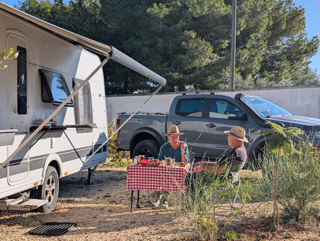 Stellplatzgröße ausreichend mit Olivenbäume begrenzt