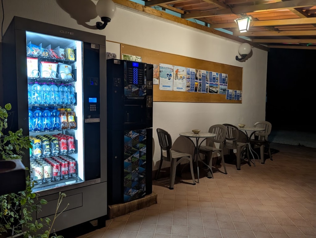 Passerelle électrique à 16 ampères, laverie automatique (lave-linge) et large choix de restauration avec service traiteur (pizzeria, restaurant et pâtisserie).