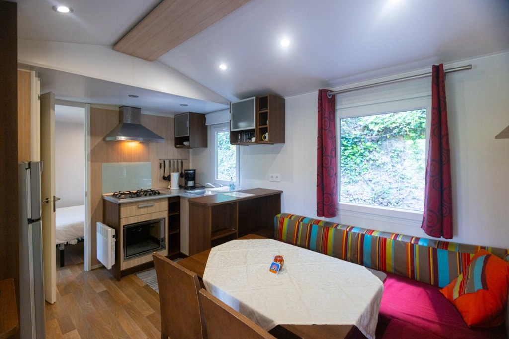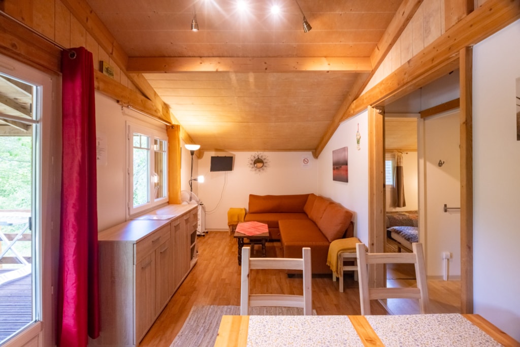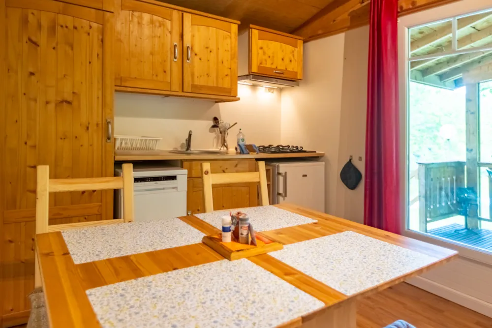 Chalet de 2 chambres avec couchage supplémentaire (max. 6 personnes) cuisine équipée et salle de bains.