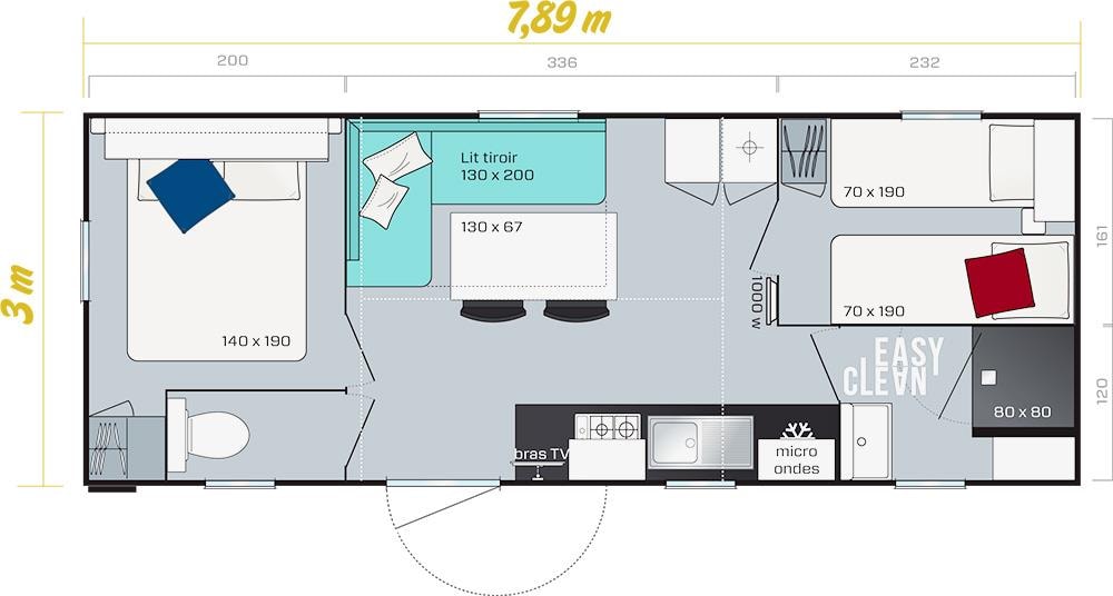 Klimaanlage, kostenloses Wifi(1 appareil), TV, Geschirr, Kühlschrank mit Gefrierfach, 4-Flammen-Gasherd, Mikrowelle, elektrische Kaffeemaschine, Bettdecken, Kissen, Decken und Besen. Tiere von -20kg erlaubt (max. 1 Tier).