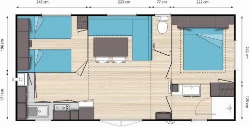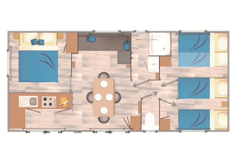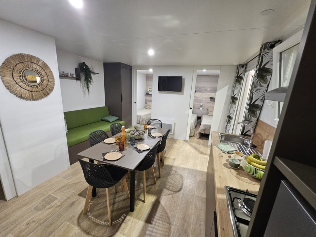 Sauberkeit beim Einzug ins Mobil Home (aufgrund starkem Gestank ein Wespennest im Spülkasten vom WC im 2. Bad entdeckt, das am Folgetag auch gleich entfernt wurde, das Bad konnte dennoch nicht mehr vor lauter Gestank genutzt werden und man kam uns auch nicht mit einer Entschädigung entgegen), Outdoorgrill (Plancha) wäre schön gewesen