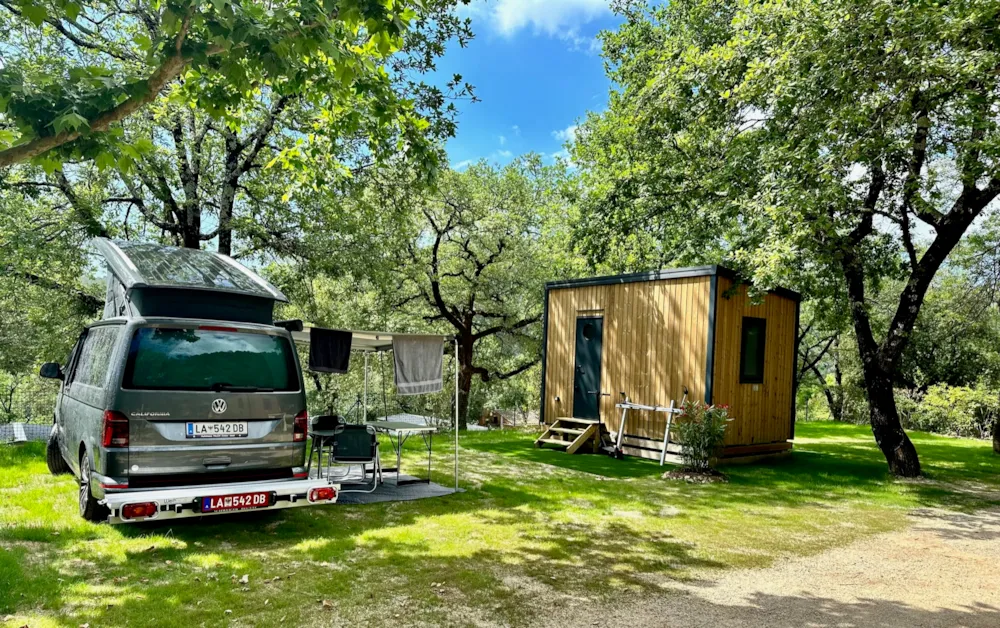 Stellplatz Nature (ohne Strom) - 7 m max. Seile/Deichsel inklusive