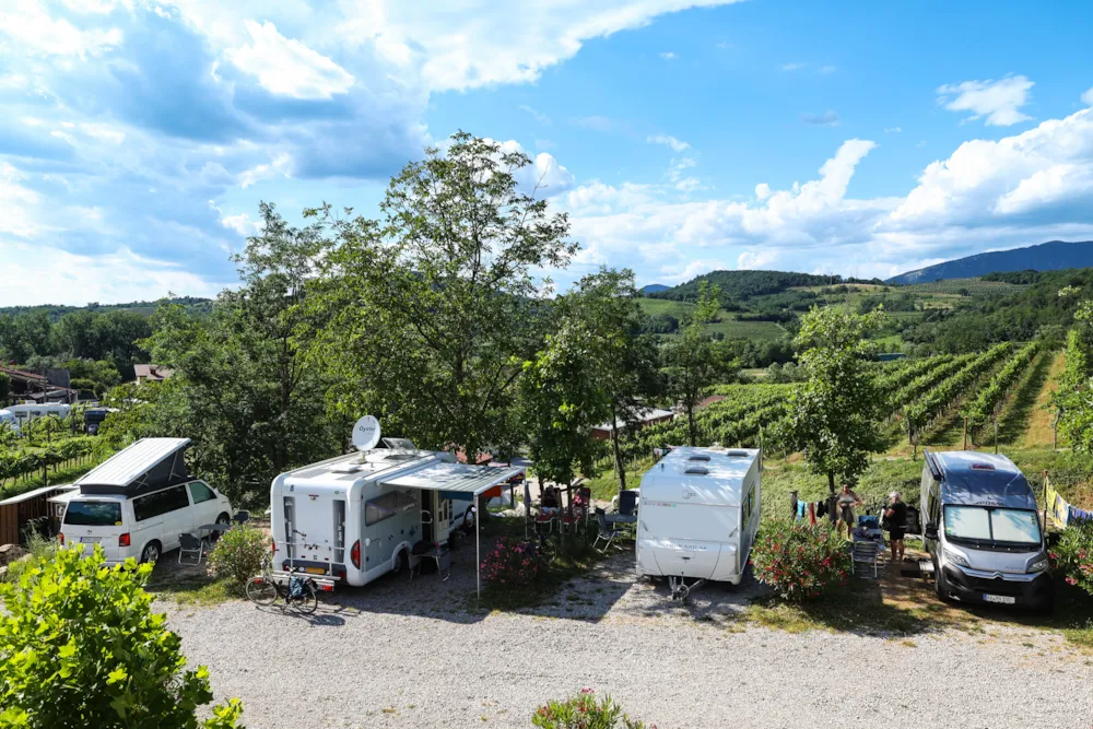 Sehr schöner Stellplatz mitten in den Weinbergen. Durch die außergewöhnliche Lage allerdings nur gelengentlicher Anschluss an öffentliche Verkehrsmittel.