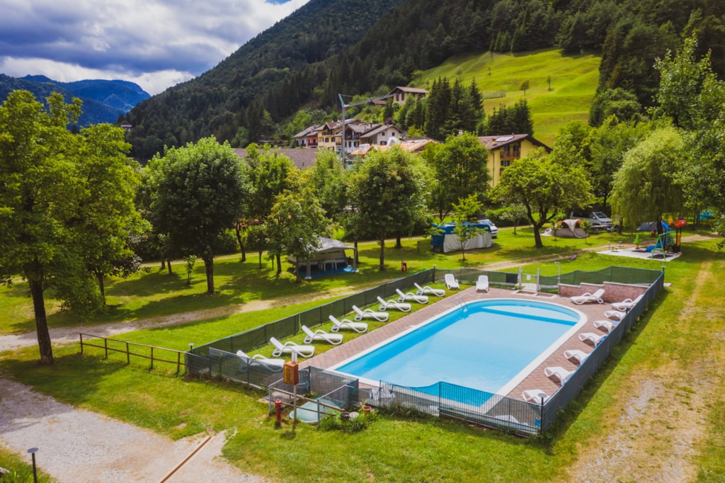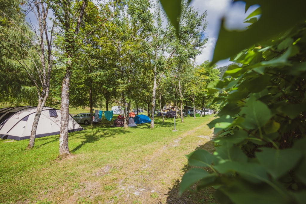 Gemutlich, komfortabel und schattige Plätze auf Rasen für Zelte, Wohnwagen oder Campingbusse laden zu einem erholsamen Urlaub inmitten der wunderschönen Berge des Ledrotals ein.