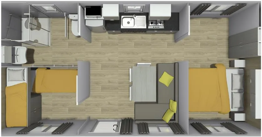Die Ausstattung ist top, Kücheneinrichtung, Betten, Dusche /WC.