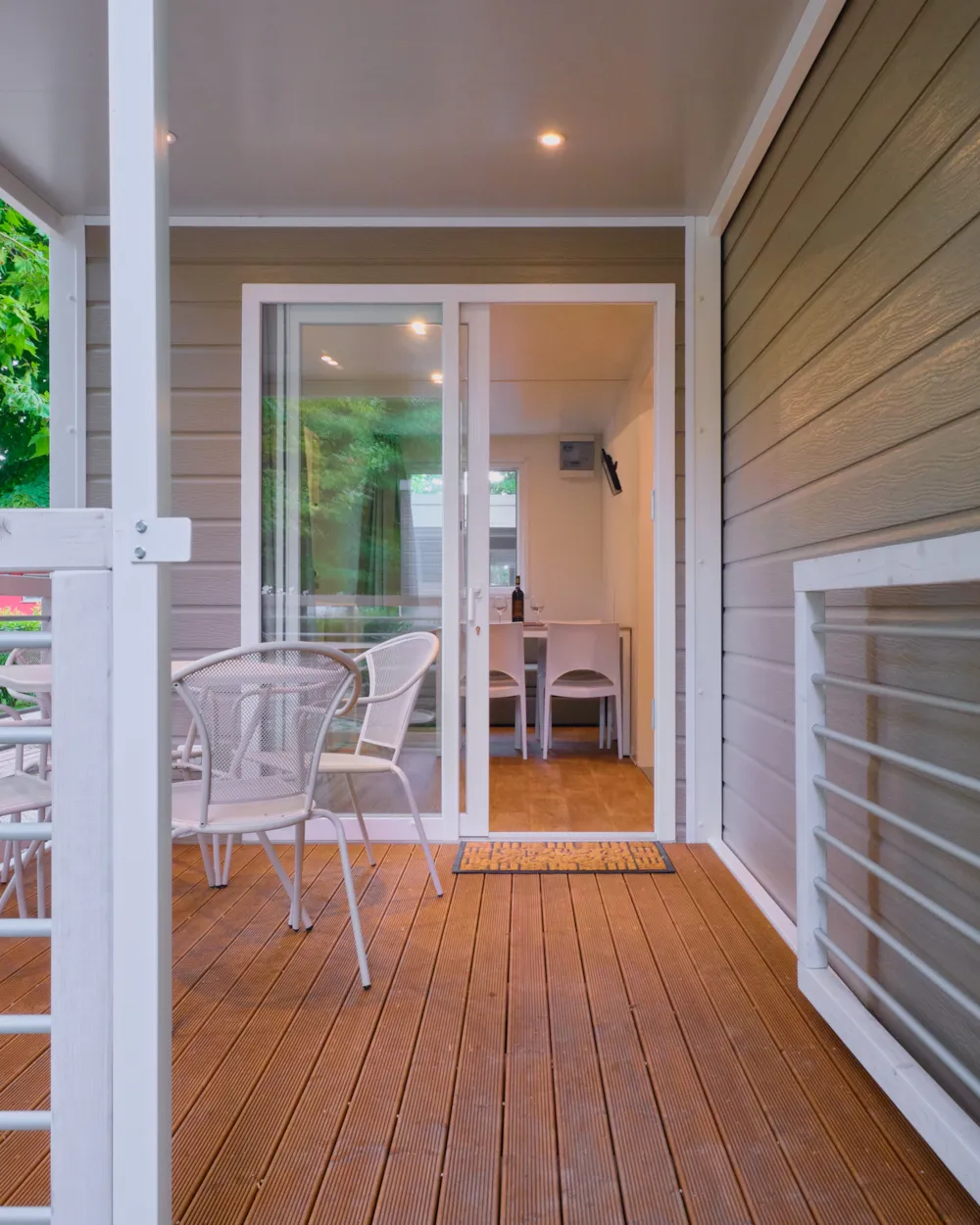 Die unbequemen Holzklappstühle auf der Veranda sollten ausgetauscht werden.