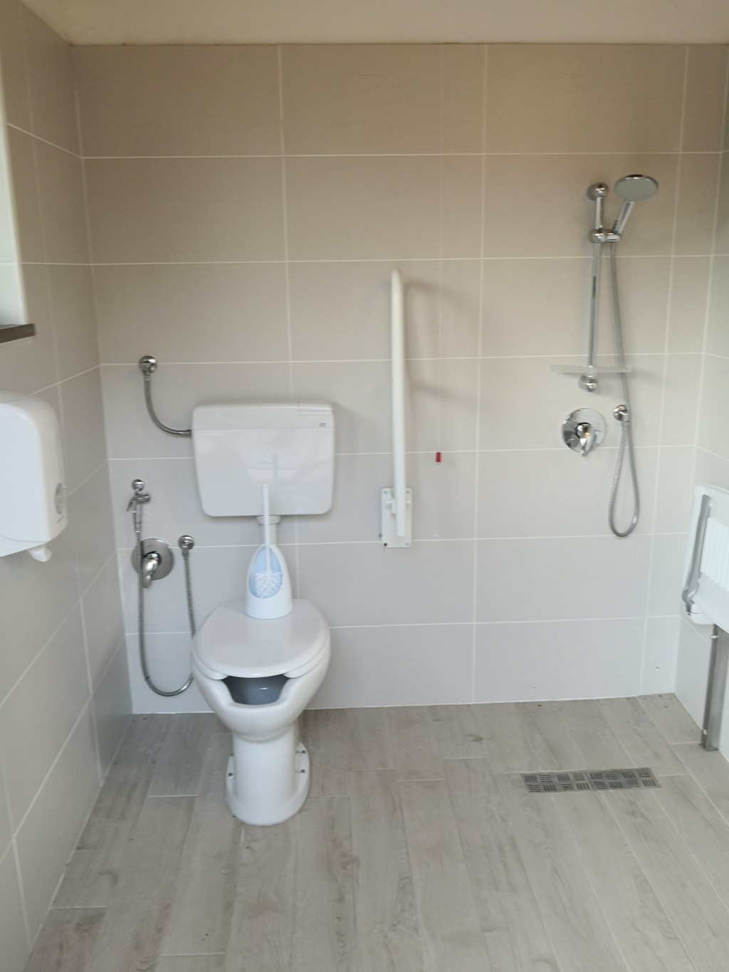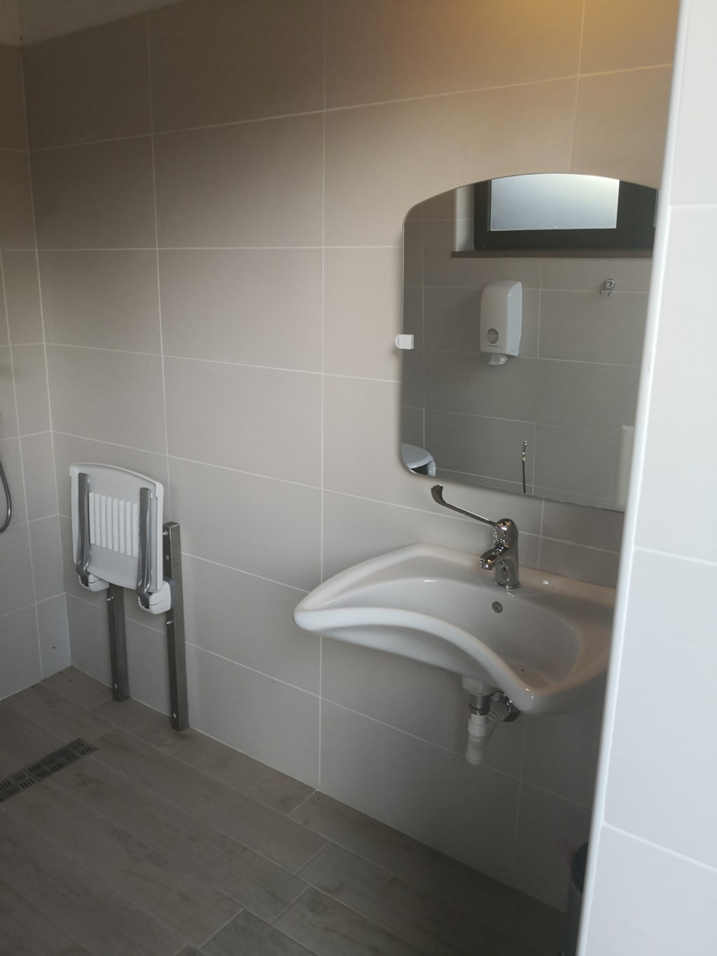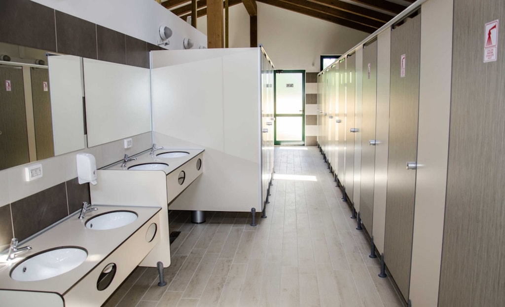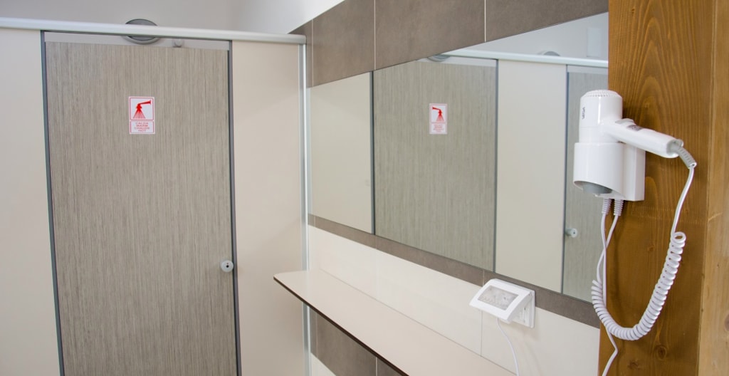 Großzügiger Platz und sehr saubere sanitäre Einrichtungen.