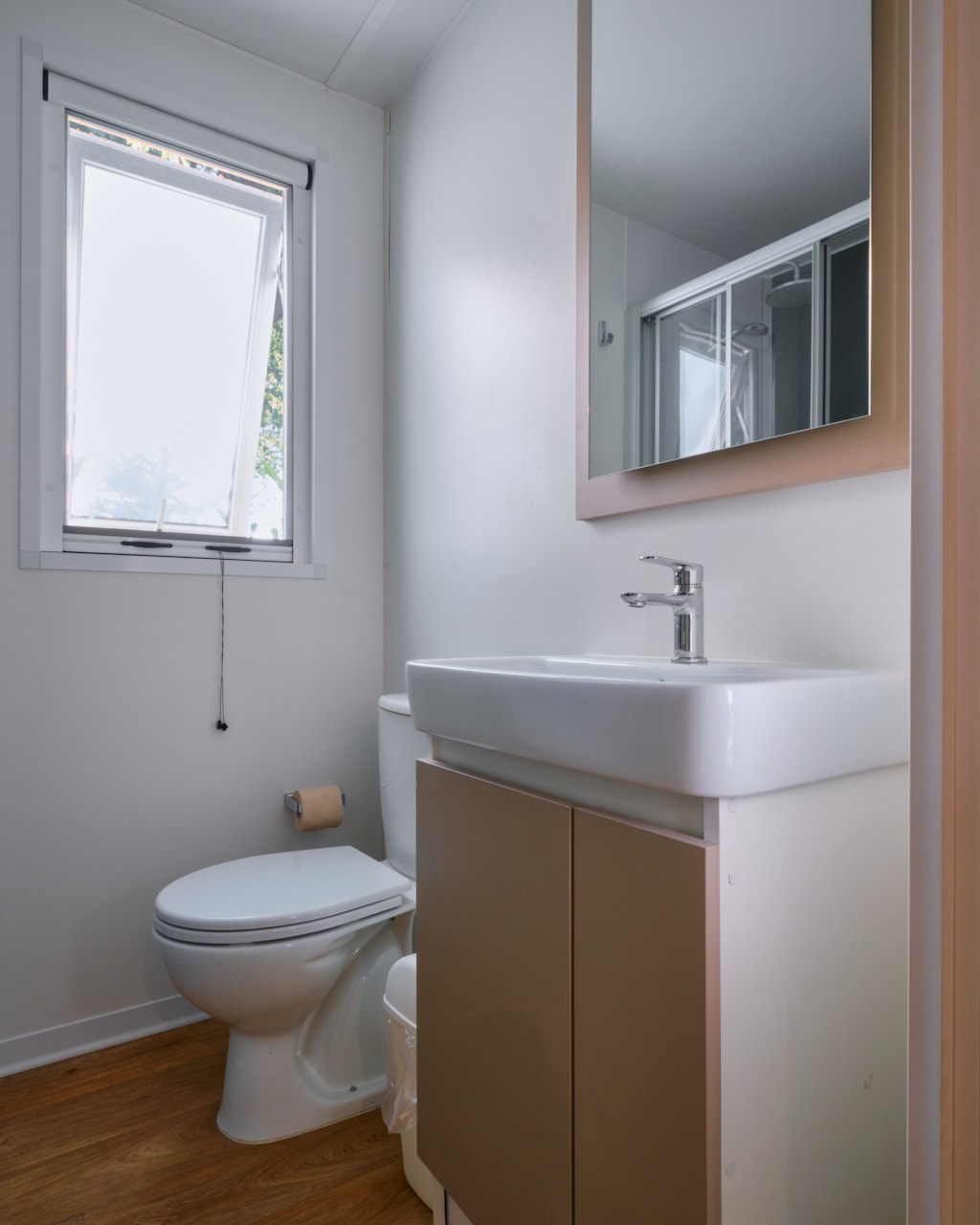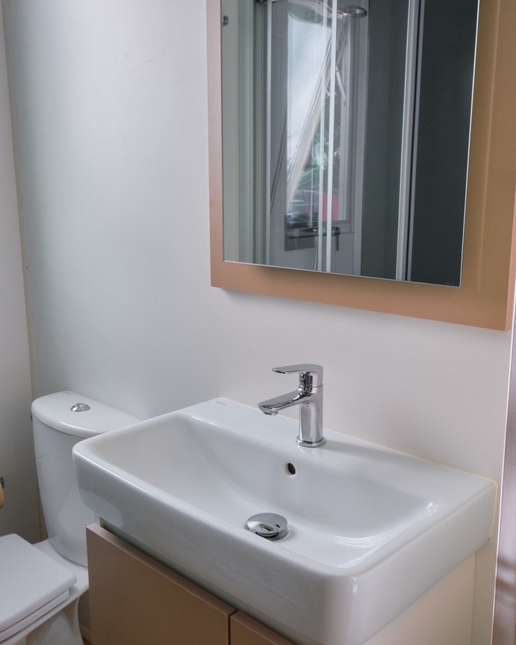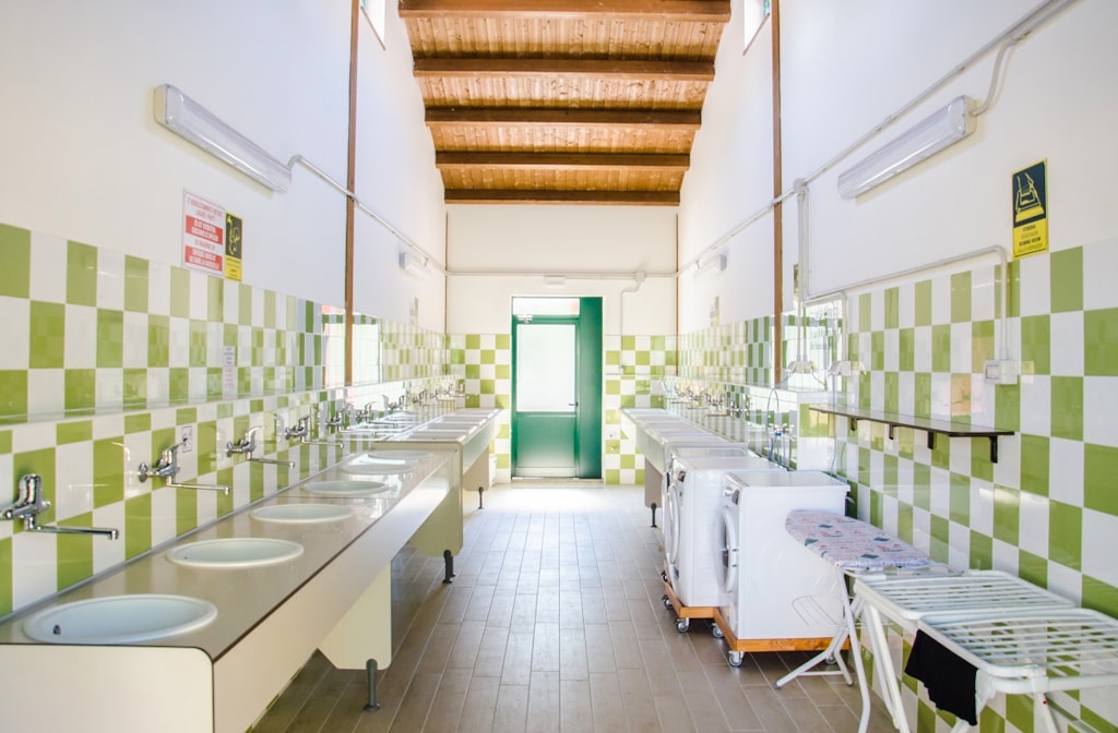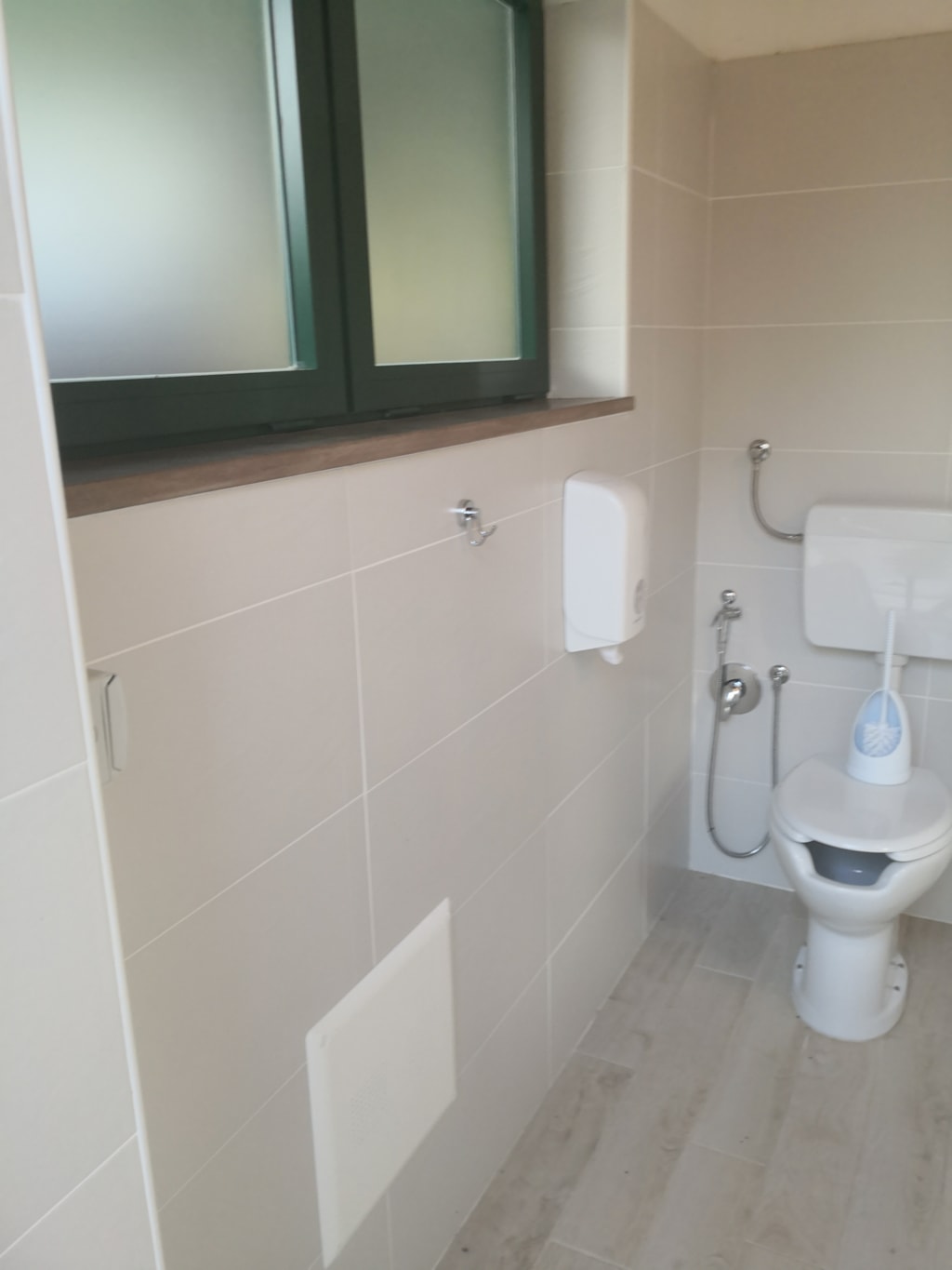 Großzügiger Platz und sehr saubere sanitäre Einrichtungen.