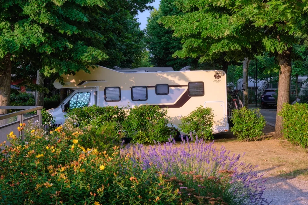 Die Stellplätze sind groß und durch Hecken oder Bepflanzung sehr gut für die Privatsphäre