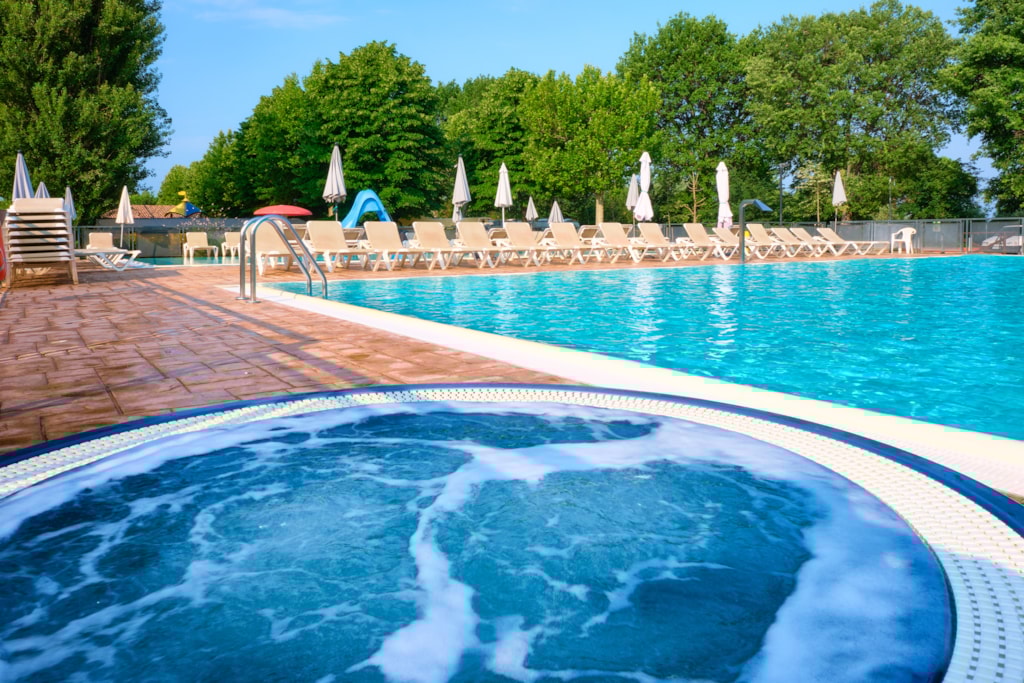 Der Campingplatz bietet geräumige Platze und ist auch gut geeignet für Hunde. Der Pool war nicht überfüllt und sehr entspannend.