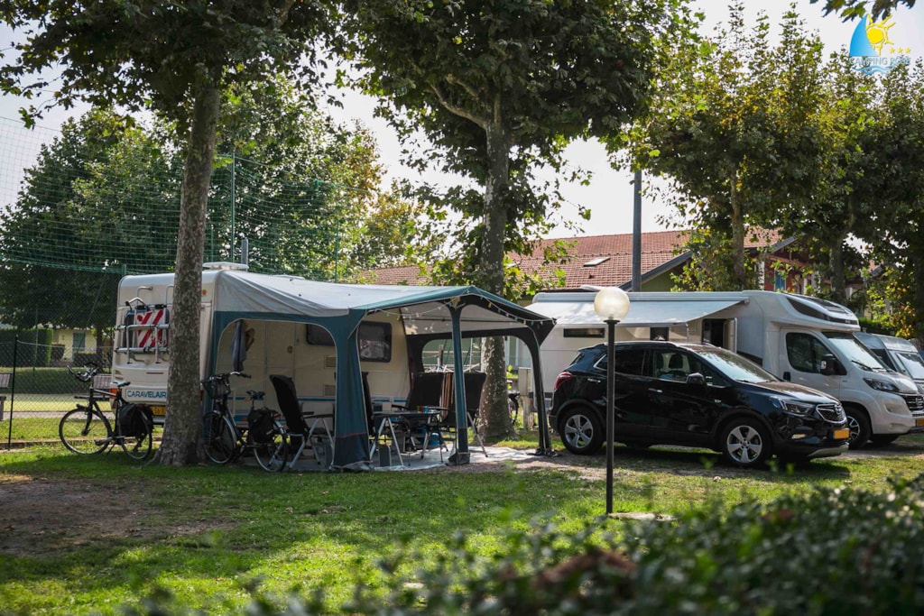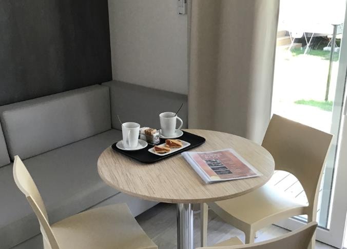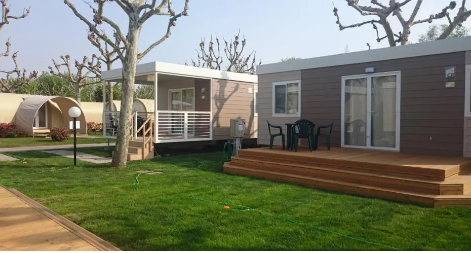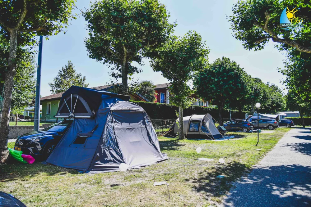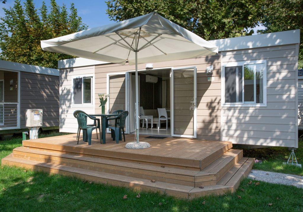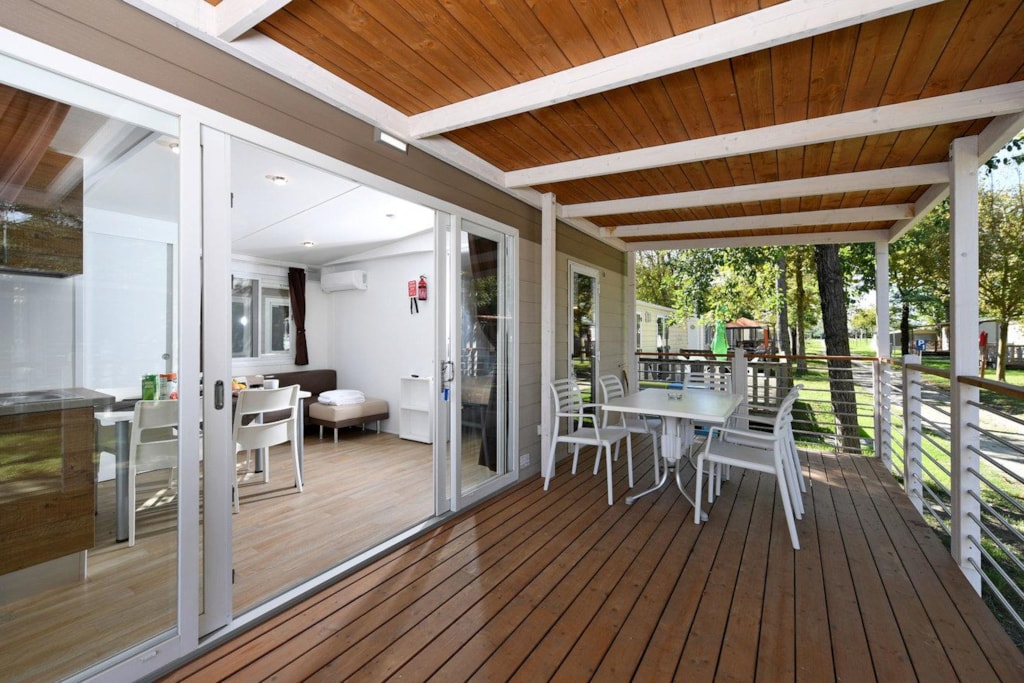 Veranda mit tisch und Stühle, 2Liegestühle am Strand ,Autopark Platz.