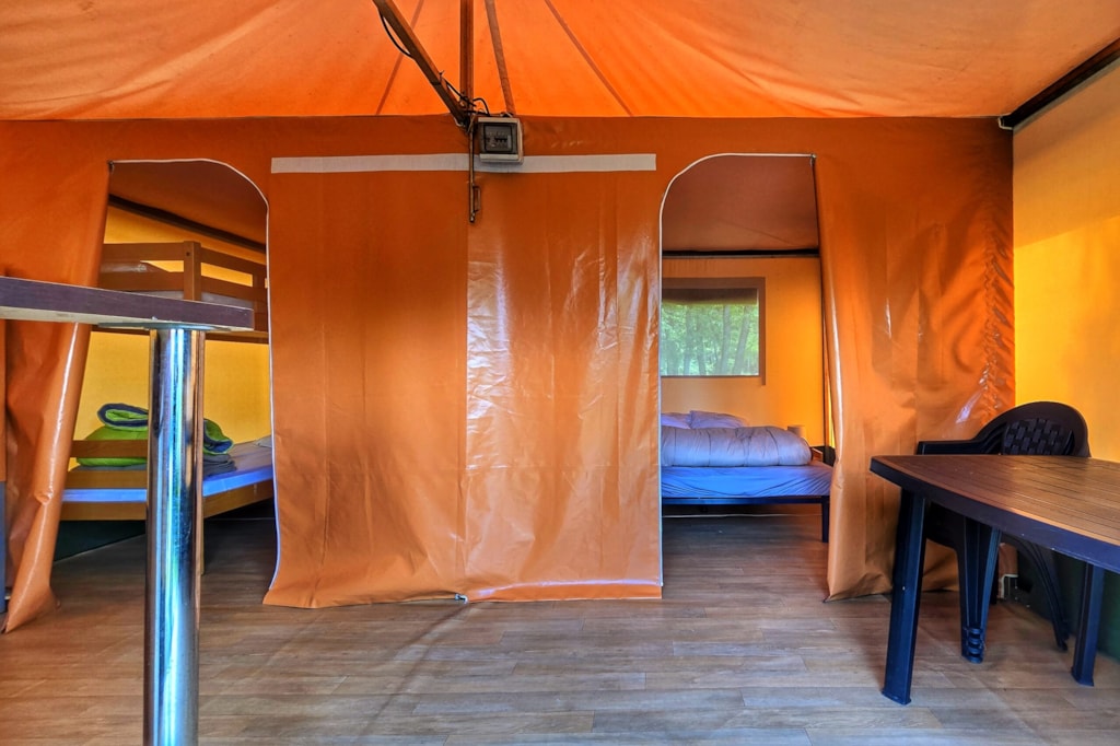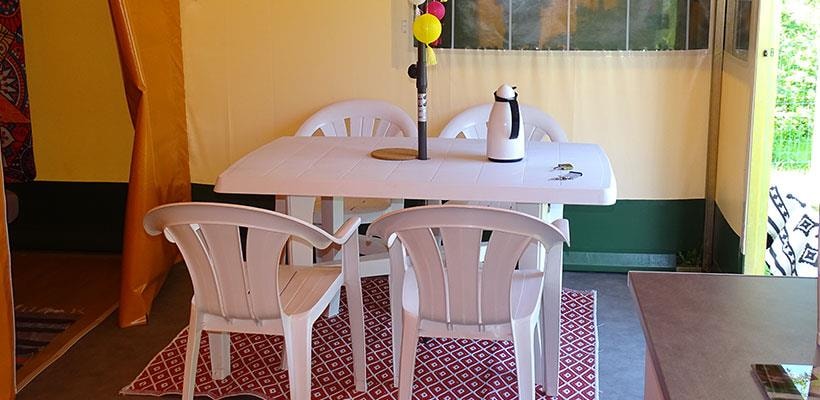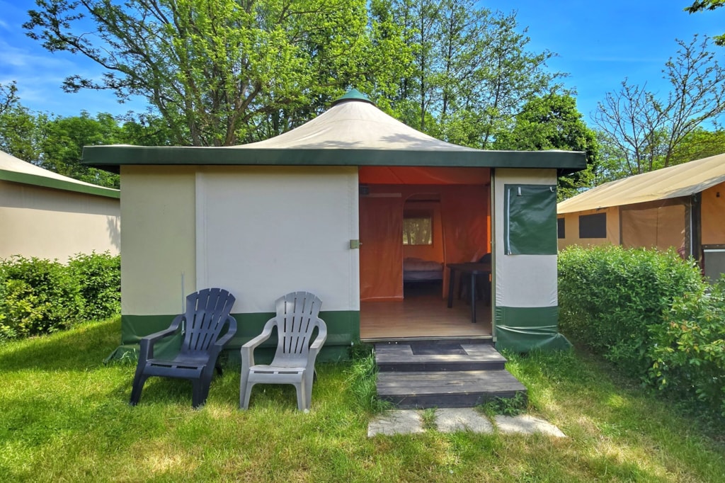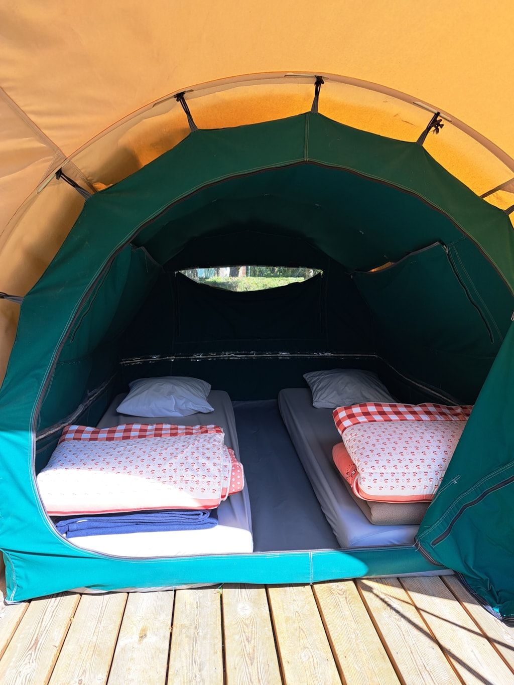 Westernzelt für 2 Personen / 2 Einzelbetten + Strom + Gartenmöbel