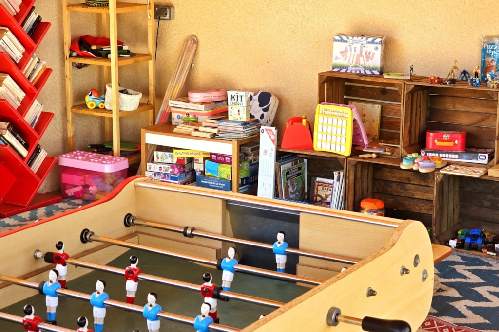 Upon request, we provide a baby cot and a table chair. Additionally, a bathtub and a changing table are available in the sanitary block.