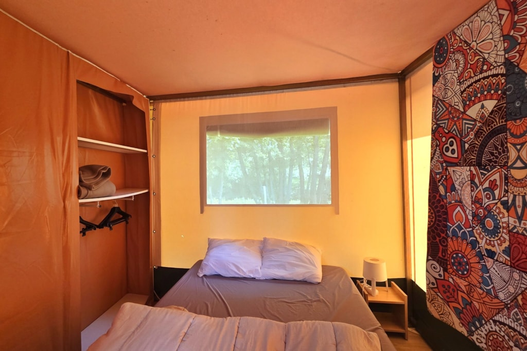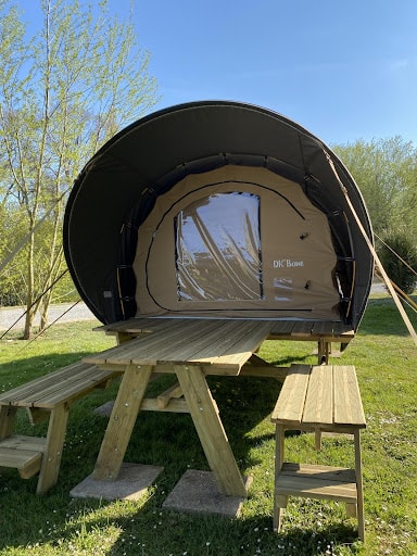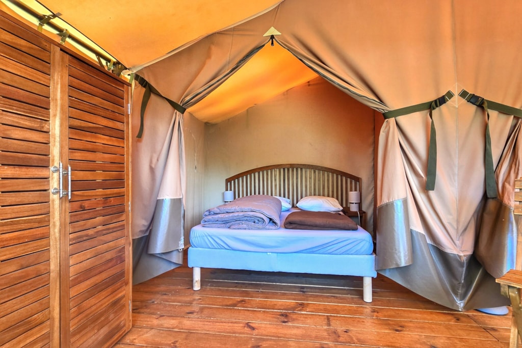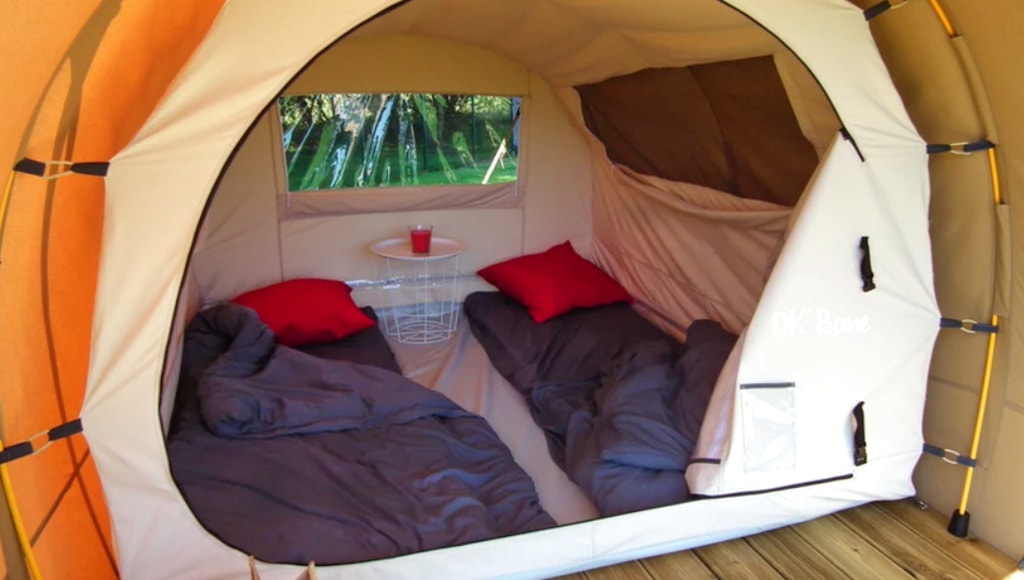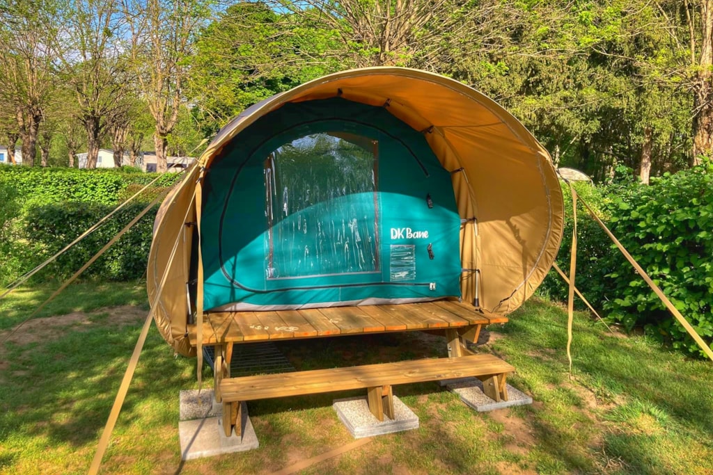 Das XL Westernzelt bietet eine einzigartige Lösung für erholsame Nächte. Dieses originelle 10 m² große Stelzenzelt bietet Platz für 2 Personen und verfügt über ein Doppelbett.