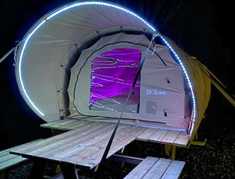 Genießen Sie ein richtiges Bett und eine gemütliche Atmosphäre mit LED-Innen- und Außenbeleuchtung in einstellbaren Farben.