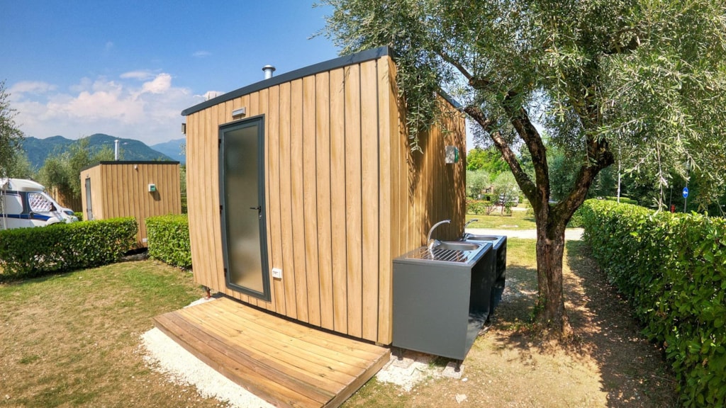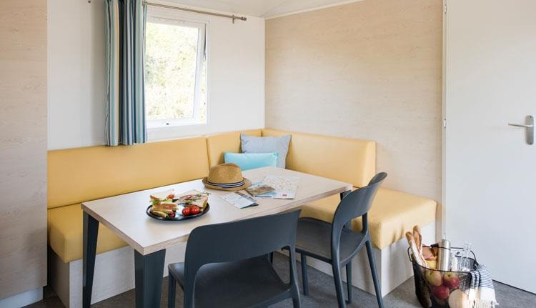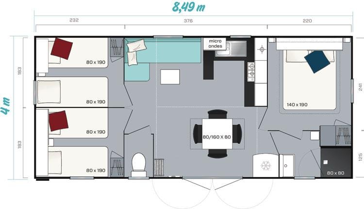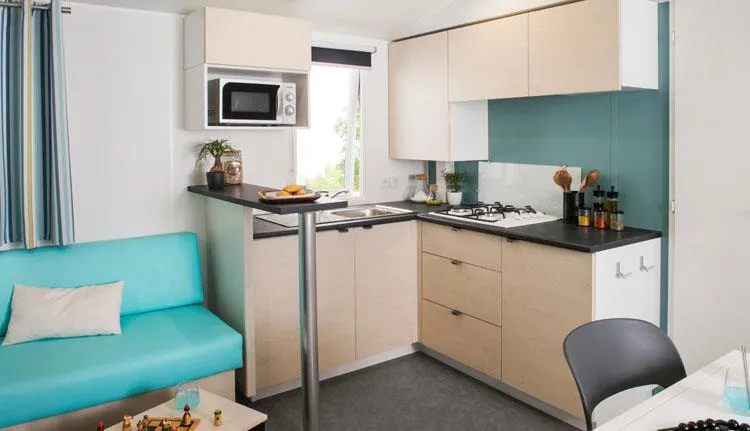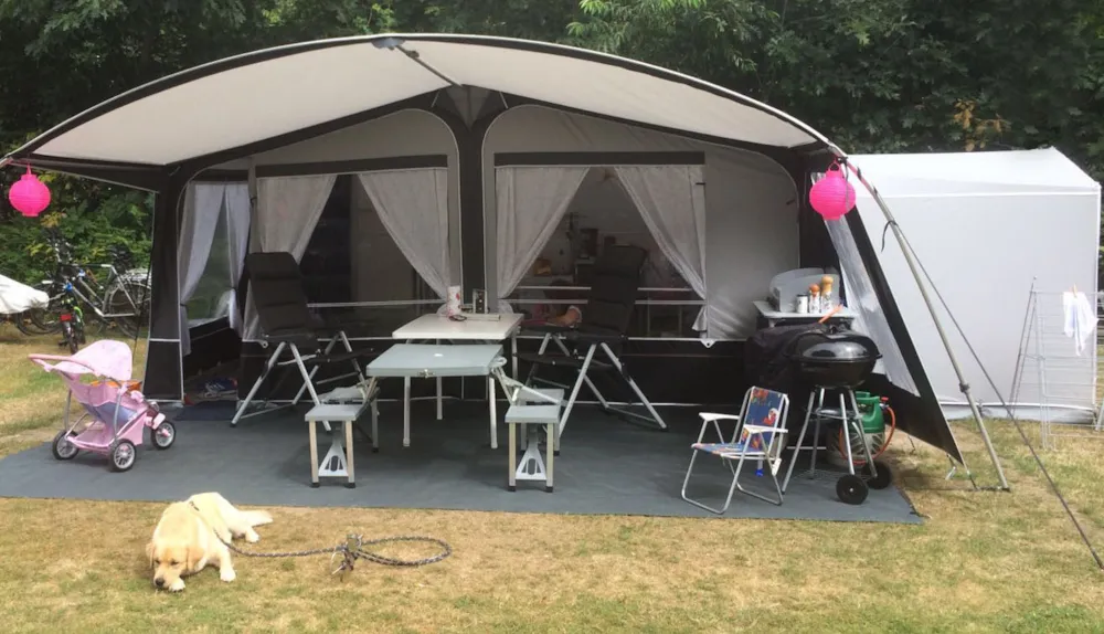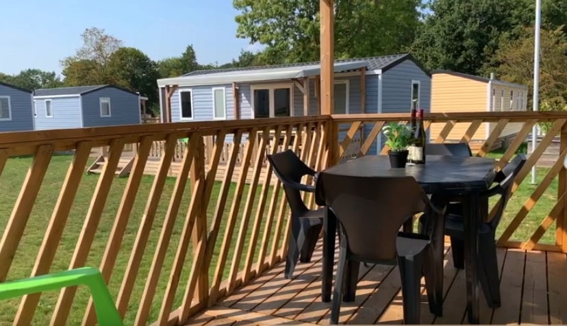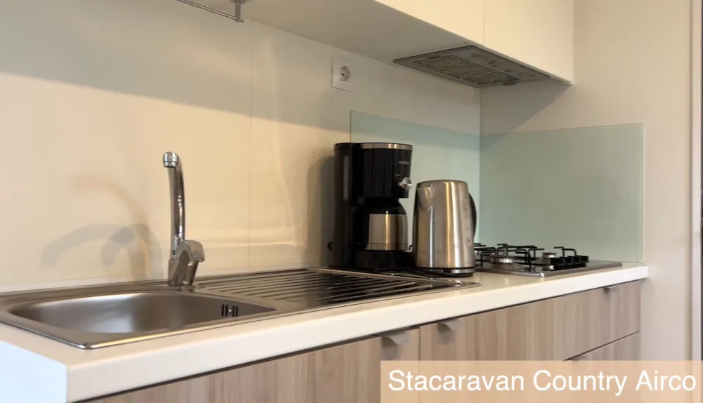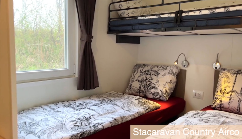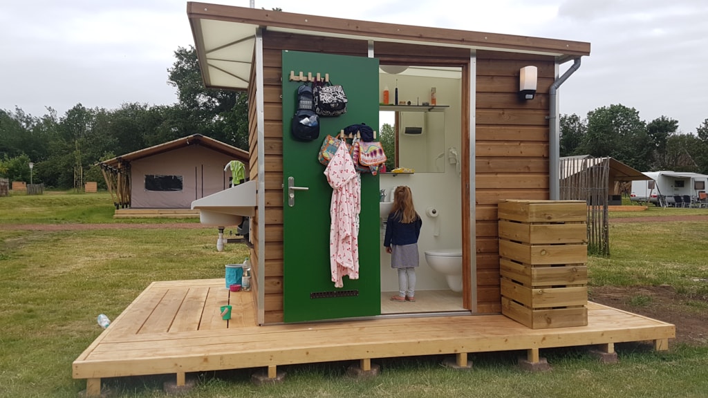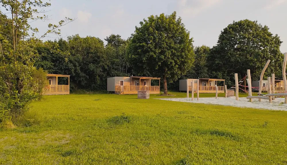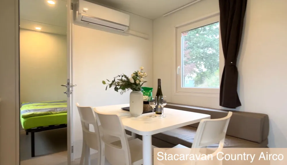 2 Schlafzimmer | ca. 32 m² (max. 5 Personen) Dieses beliebte Borken Deluxe Mobilheim zeichnet sich durch seine große Holzveranda von 9 m² aus . Die Terrasse ist (halb) überdacht, so daß Sie auch bei schlechteren Wetterbedingungen draußen sitzen können. Die große Glasfront beim Wohnbereich sorgt für einen optimalen Licheinfall. Die Mobilheime stehen weit auseinander, so daß Sie auch im Urlaub von Ihrer Privatspäre genießen können. Das Mobilheim hat 4 Schlafgelegenheiten. Eine eventuelle 5. Person kann auf der Bank im Wohnbereich schlafen. Die Mobilheime Borken Deluxe verfügen über eine Heizung. Moderner Wohnbereich mit komfortabler Eßecke (diese kann bei Bedarf zu einer Schlafbank für 2 Personen umgebaut werden). Besonders viel Lichteinfall durch die große Glasfront. Die offene, vollständig eingerichtete Küche verfügt über einen Kühlschrank mit Gefrierfach, einem Kochfeld mit 4 Gasbrennern, Kaffeemaschine und einen Wasserkocher. Das Elternschlafzimmer ist ausgestattet mit einem Doppelbett (140 x 190) und viel Stauraum. In diesem Zimmer ist es zudem möglich, ein Babybettchen aufzustellen. Im Kinderzimmer befinden sich 2 Einzelbetten (80 x 190). Das Badezimmer ist ausgestattet mit einem Schrank, Waschtisch und einer Duschkabine. Das WC ist separat. Auf der gemütlichen Holzveranda befinden sich Gartenmöbel und ein Sonnenschirm. Die Terrasse ist (halb) überdacht. Vor Ort zu zahlen: € 17,00 Umwelt Beitrag